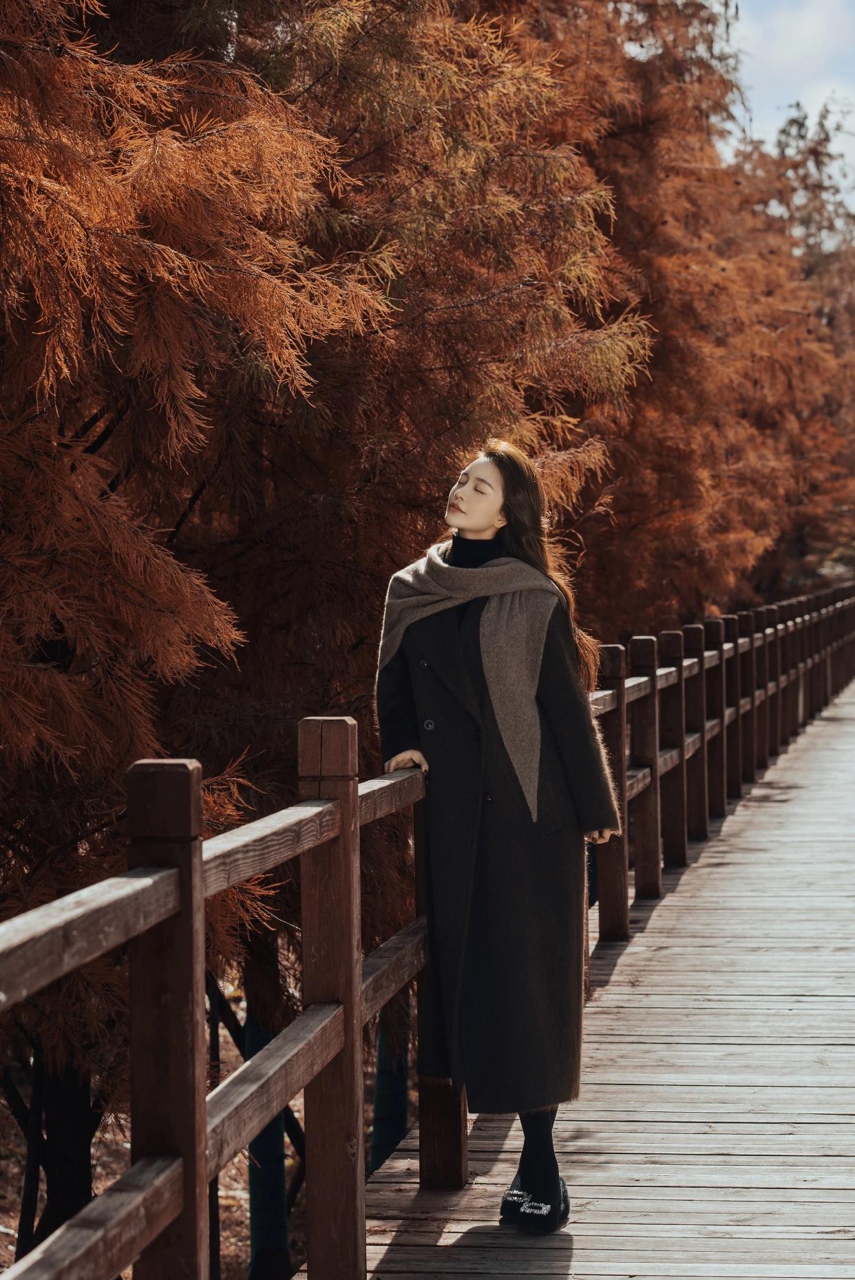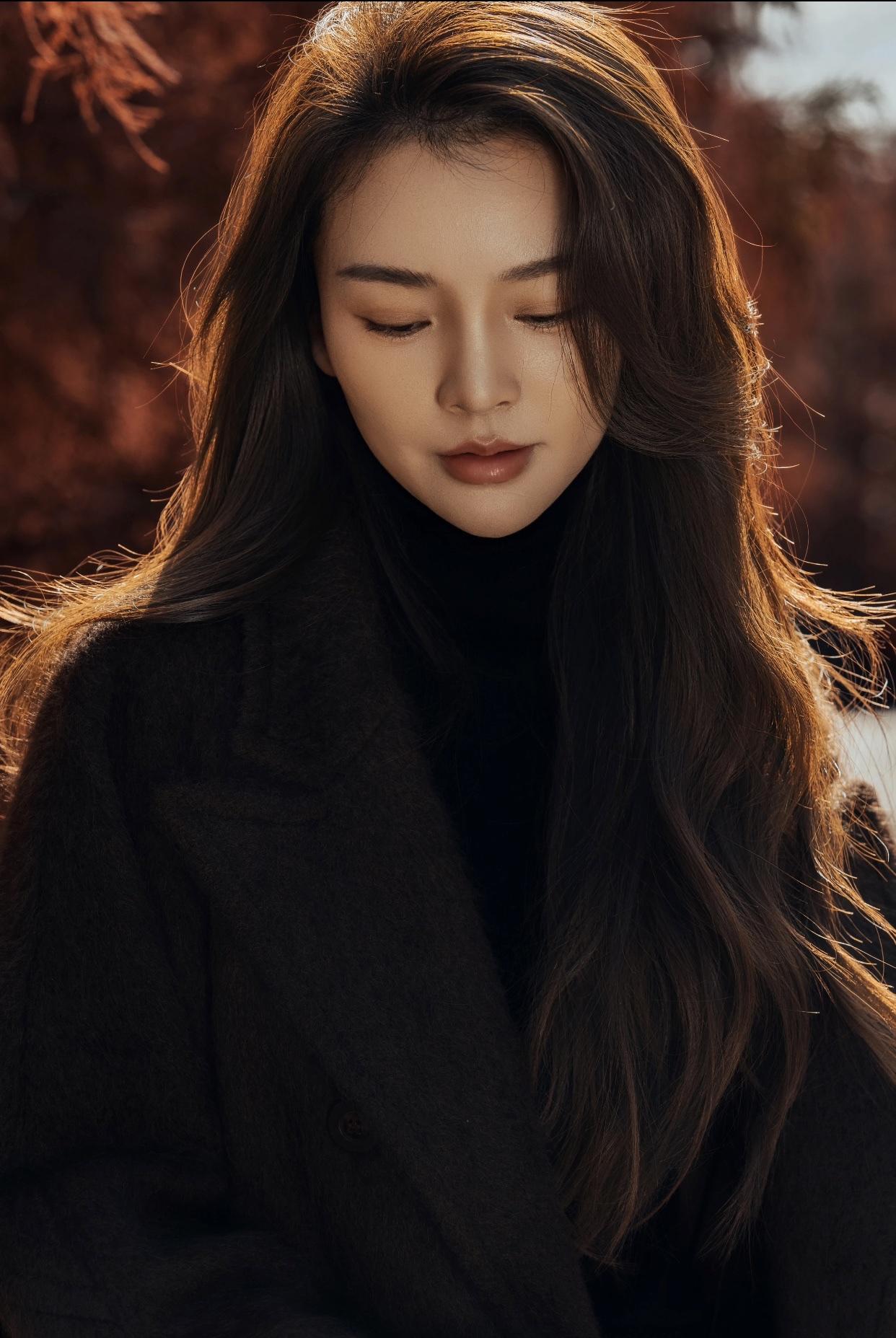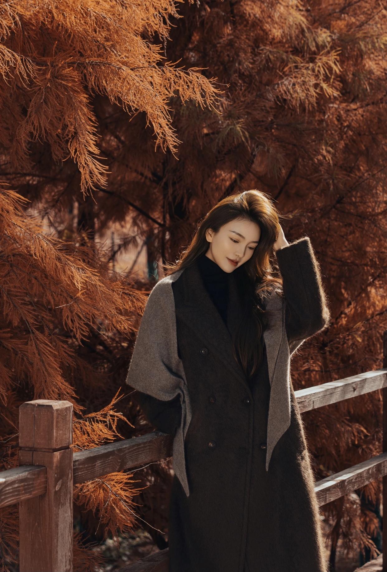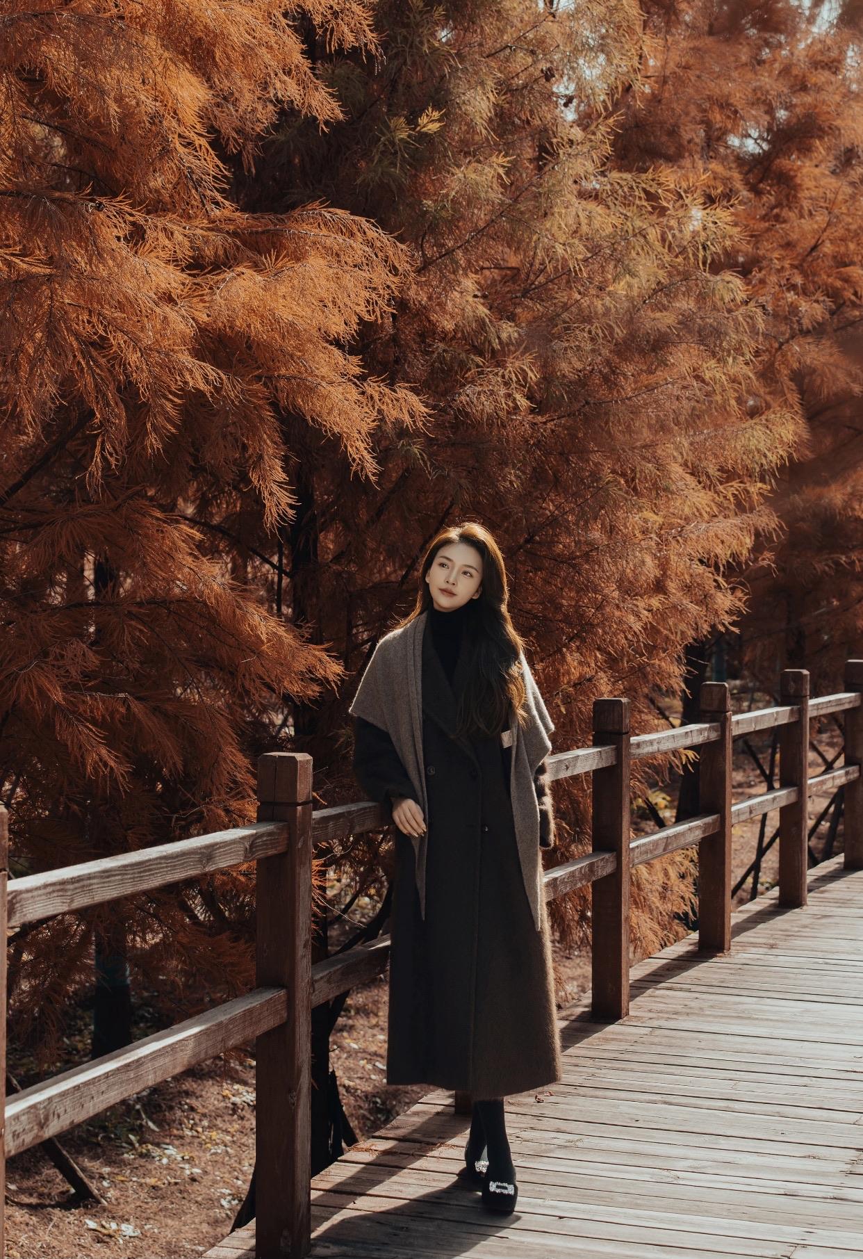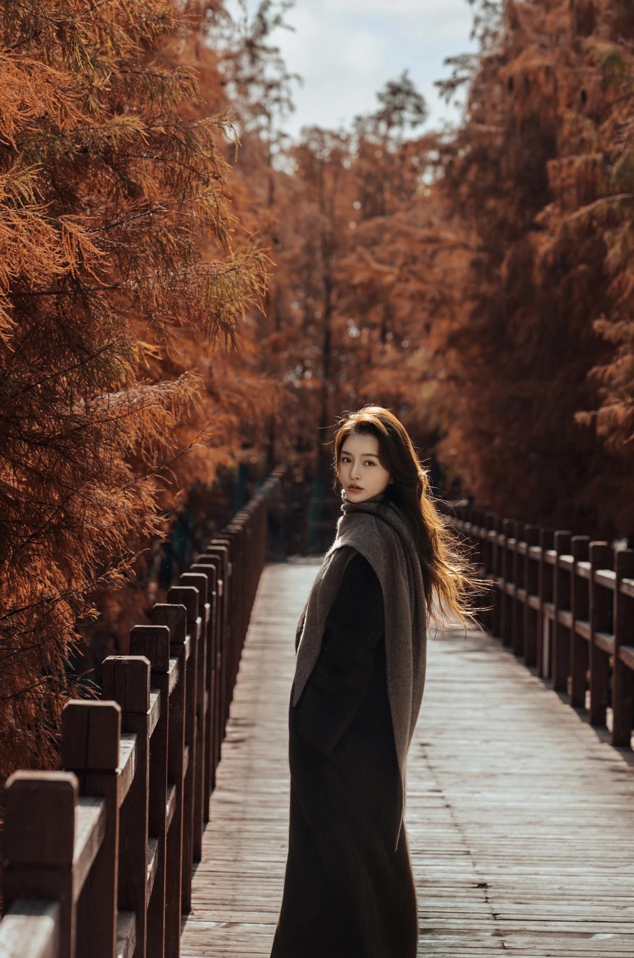 秋日漫步,红叶如火,长裙飘飘,悠然自得。
