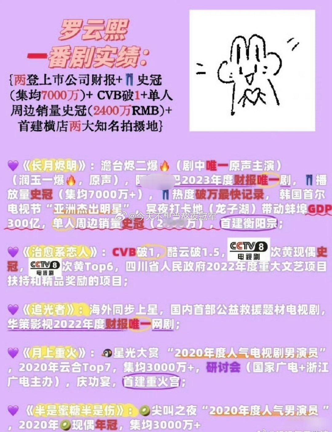 罗云熙近几年一番剧实绩一览👀👀罗云熙四大平台作品集均