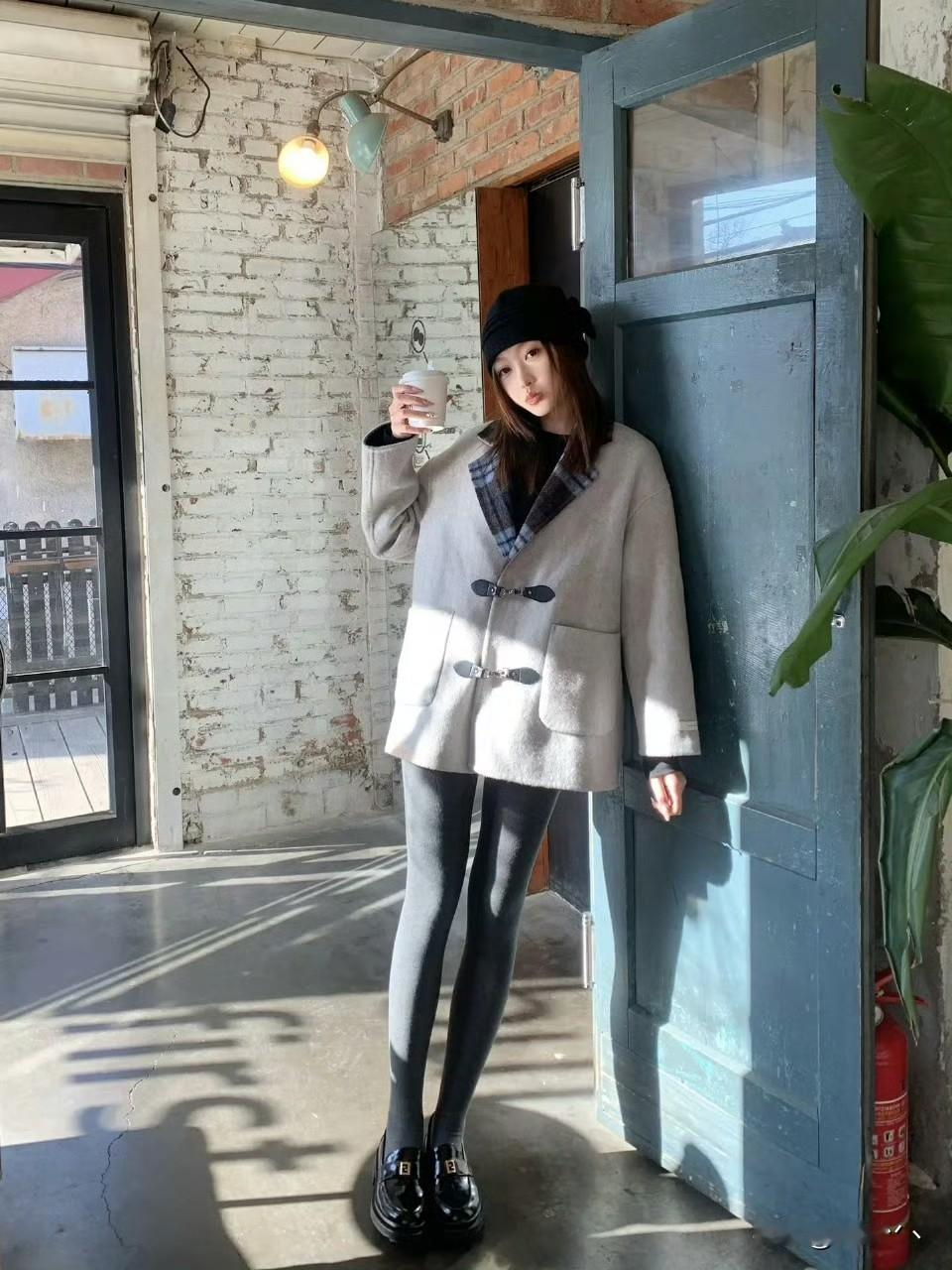 冬日松弛感穿搭拿捏✨ 浅灰色牛角扣大衣自带温柔滤镜,格纹翻领撞色添了点复古小心机,宽松版型藏肉又自在。内搭黑色打底+同色系灰色连裤袜,顺色穿搭视觉拉长比例,踩一双亮面乐福鞋,甜酷平衡刚好。再戴一顶黑色针织堆堆帽,慵懒又显脸小~在洒满阳光的咖啡店随手拍,韩系氛围感直接拉满,简约又不失细节的冬日look太爱了💛女生穿搭如何又飒又美? 大衣灰色穿搭 灰色系大衣穿搭 灰色大衣搭配 极简风大衣穿搭 温柔系大衣搭配 穿搭 ootd