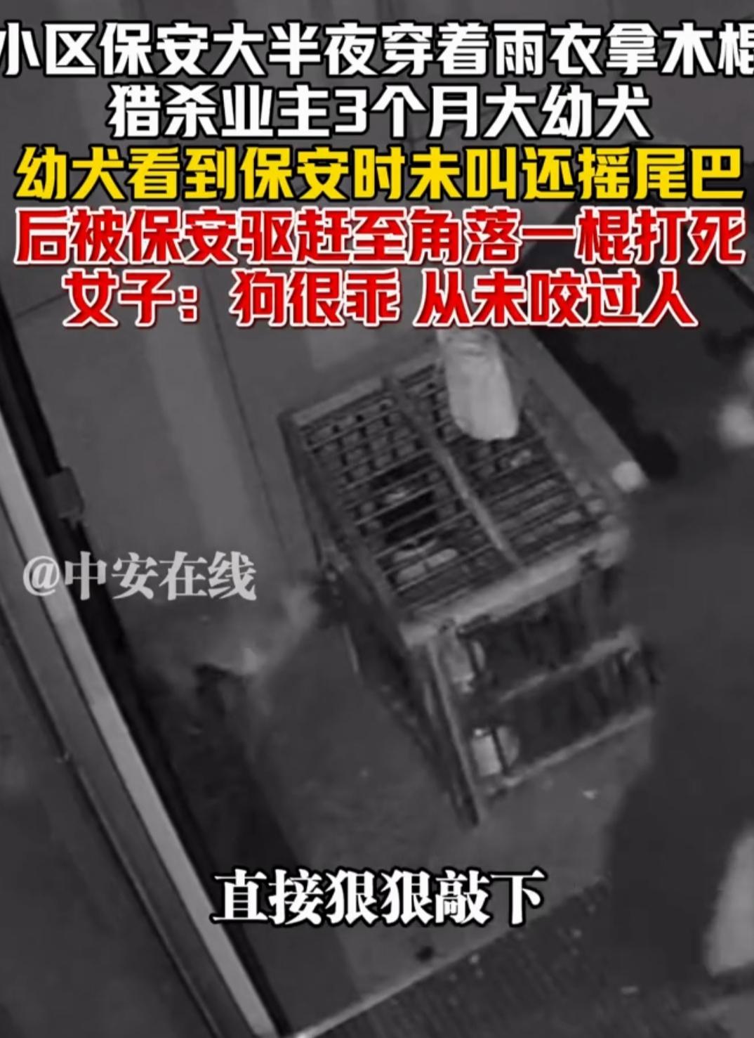小区保安一棍打死3月幼犬引众怒!真相背后,养犬自由与公共安全该如何平衡? 监控画面刺痛无数人:小区内,3个月大的幼犬在自家专属院落活动时,被值班保安一棍击中头部当场死亡,事后保安还将犬只尸体扔进灌木丛。这起事件迅速引爆网络,一边是业主痛失“家人”的崩溃哭喊,一边是网友对保安暴力执法的强烈谴责,而更值得深思的是,这并非个例——此前已有柴犬遭该保安同样方式处置。 事件发酵后,两种声音激烈碰撞:爱宠人士怒斥保安手段残忍,即便犬只有潜在风险,也不应下此狠手;支持保安者则直言,小区犬只扰民、伤人事件频发,2025年上半年全国就有18万多起涉犬纠纷,七成源于不牵绳等违规行为 ,保安或许是出于安全考量。但无论何种理由,暴力处置都逾越了底线,物业已明确将其开除,警方也已介入调查。 其实,矛盾的核心从来不是“狗”,而是规则与边界。新修订的《治安管理处罚法》即将实施,明确遛狗不牵绳、放任犬只恐吓他人等行为均属违法,最高可处十日拘留。但另一方面,安保人员也需恪守处置规范,像四川绵阳某大学保安暴力打死流浪犬后被解聘的案例,早已敲响警钟 。 小区是公共空间,既容不下漠视规则的养犬行为,也容不得肆意妄为的暴力处置。解决问题的关键,在于物业完善管理细则,明确“先劝阻、后上报”的处置流程;养犬人主动遵守法规,做好牵绳、免疫等义务;相关部门加强执法监督,让违规者付出代价。 3个月大的幼犬无辜离世,本是可以避免的悲剧。愿这起事件能成为警示,让养犬人守规矩、管理者讲方法,让人与宠物在社区里和谐共处。你认为小区该如何杜绝此类冲突?欢迎在评论区留言讨论。人与宠物