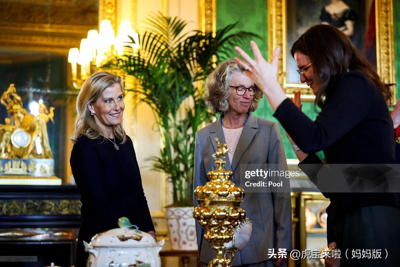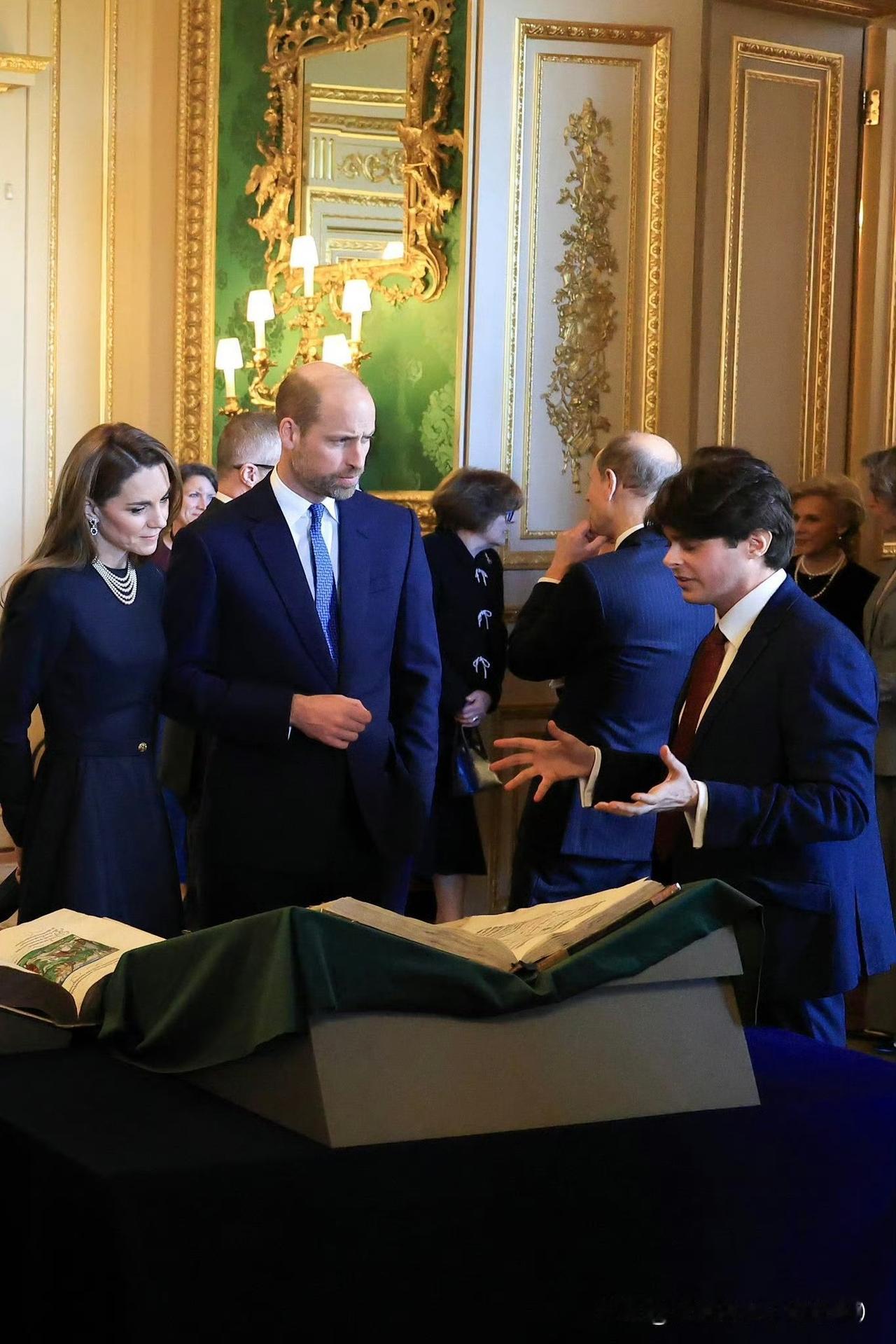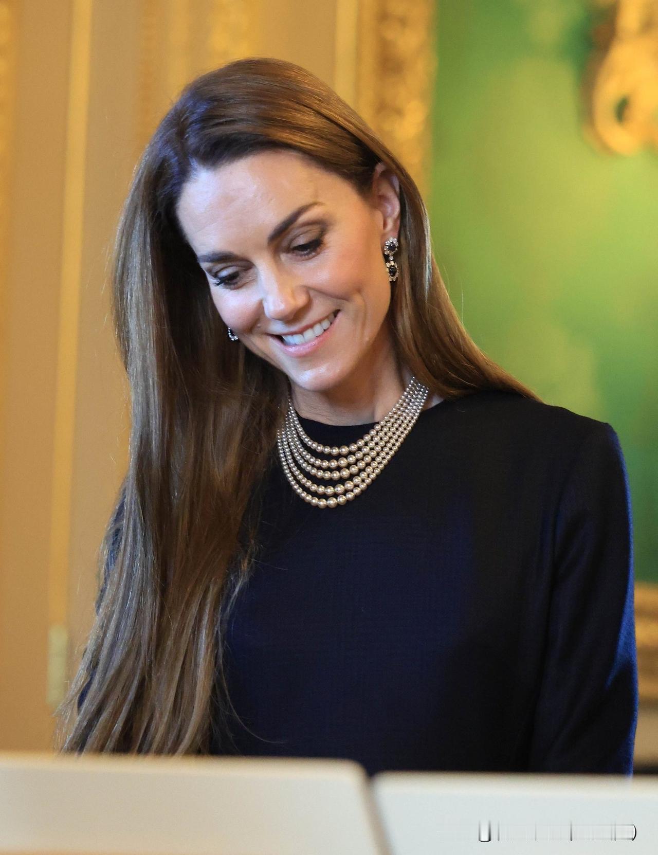 午宴过后的环节,参展。凯特王妃长袖款Burberry连衣裙搭配了五股白色珍珠项链