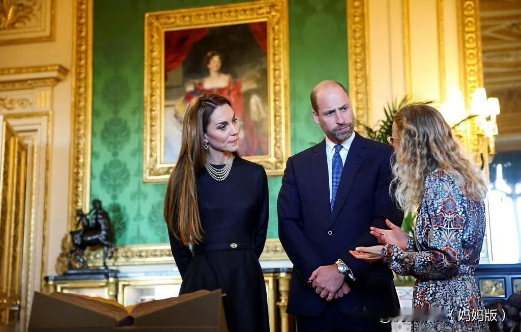 午宴过后的环节,参展。凯特王妃长袖款Burberry连衣裙搭配了五股白色珍珠项链!精致优雅!