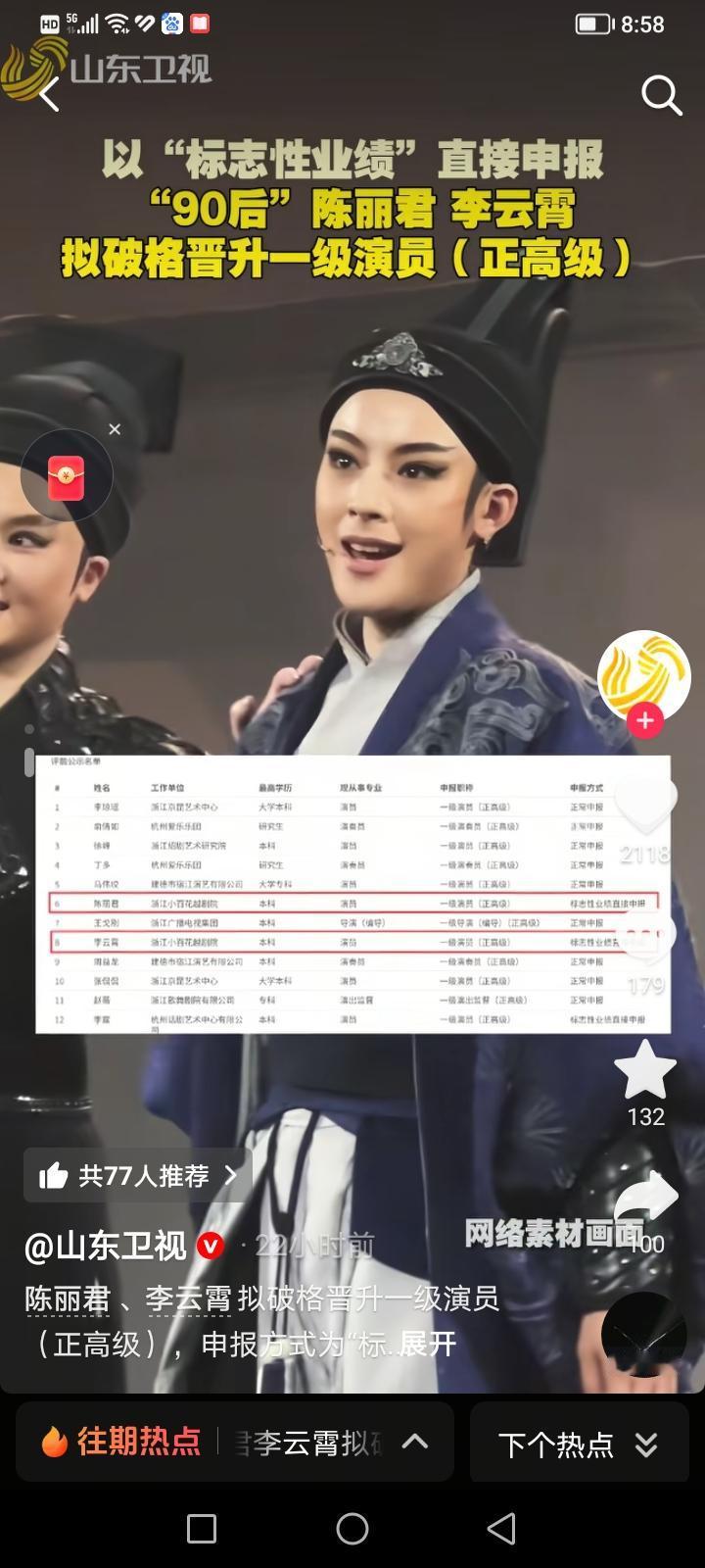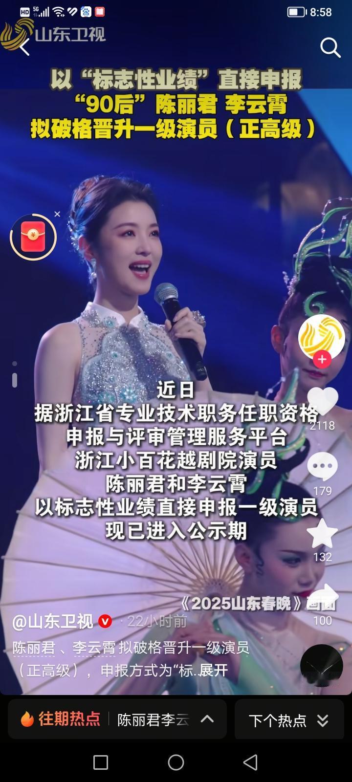 陈丽君,李云霄,拟破格晋升一级演员(正高级职称)冲上热搜,目前处于公示期,已经是处于最后的阶段了,公示期过完没有问题,这事基本就成了。我说一下个人看法,事情恐怕多少会有点波折,尤其是对陈丽君来说,波折可能会更大。演员评审流程分为三部分:通常7 - 8月完成网上申报,9 - 10月进入初审和专家评审阶段,耗时约60天;11 - 12月就会公示评审结果并开放证书下载,公示及取证环节约30天。公示期就是说明专家评审这方面已经没有问题了,在专业技能方面二人都没有问题。剩下的就是面对大众的考验,需要面对的是一些生活中的小事和平时的为人处事。流量是把双刃剑,陈丽君,李云霄两人这两年流量都非常大,尤其是陈丽君。有多少人喜欢你,就会有多少人不喜欢你,而且不喜欢你的人会更多,有时候会是没有任何原因。二人这次晋升的消息,如果没有上热搜,可能会顺利很多。但上了热搜之后,那关注的人就会多。不想让你称心如意的人,就会更多。流量时代没有来临之前,那时候许多单位人员晋升其实会非常简单,因为它面对的只是本单位或者是少部分人,除非一个人人缘特别差,投诉才会多,一般其实很少,晋升会顺利很多,其实它更像是一个“小圈子”的评议。她二人这次冲上热搜,那关注的人就不是一人两人了,热搜把专业评审推向了公共视野,就会充满许多不确定性。如果有100个人去投诉,哪怕全部是假的,哪怕它是一些鸡毛蒜皮的小事,但领导看了这么多投诉,也会很头疼,他需要每一件事去核实。杭州是一个包容性的城市,也是一个对人才充满友好的城市。她二人的这次破格晋升,更能说明杭州这个城市对人才的渴望。她二人作为这个行业中的青年标杆,需要面对更多的考验,也是正常的。她二人只要通过这次的考核,那未来的前途是光明灿烂的。陈丽君 陈丽君的演艺生涯有哪些特色作品? 李云霄 越剧李云霄陈丽君 陈丽君唱功 演员职称 李云霄生日