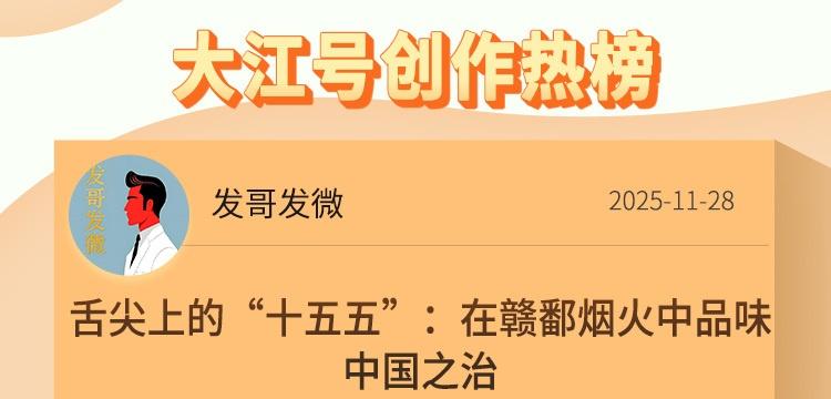 【大江号创作热榜第45期|从宿舍隐私到低空蓝图 社会离不开“隐形标尺”】从宿舍直播的隐私边界,到动物园里的文明标尺;从低空经济的空域蓝图,至“十五五”期间的餐桌安全体系——本期大江号创作热榜的四篇评论与深度报道,虽然题材各异,却共同指向一个宏大而紧迫的主题:在技术革新与观念剧变的时代,我们如何重新定义并守护那些支撑社会有序运行的“隐形规则”。网页链接