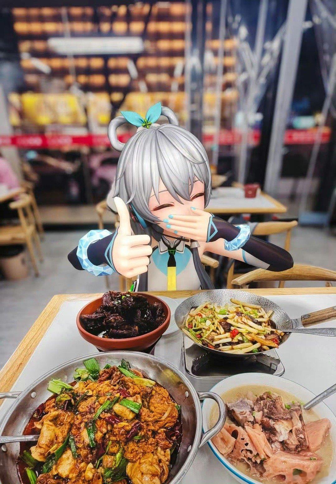 洛天依辣成这样了 斯哈斯哈的呼吸声里都是对美味的尊重!天依宝宝被辣到飙泪,却依然坚持竖起大拇指,仿佛在说:“这道菜,值得我流泪!”虚拟偶像演出了吃货的终极信仰,这沉浸感赢麻了。