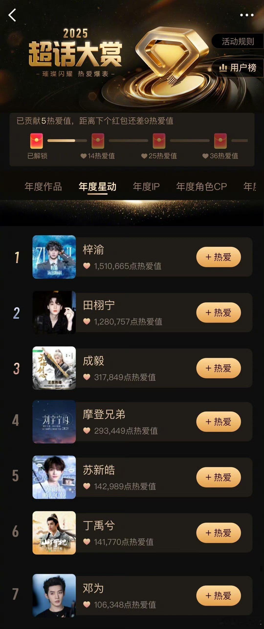 梓渝田栩宁超话热爱值破百万田栩宁梓渝超话热爱值破百万2025超话大赏热血领跑!梓渝151万+热爱值、田栩宁128万+热爱值强势解锁百万俱乐部,星光与热爱双向奔赴,为心动超话打call不停~