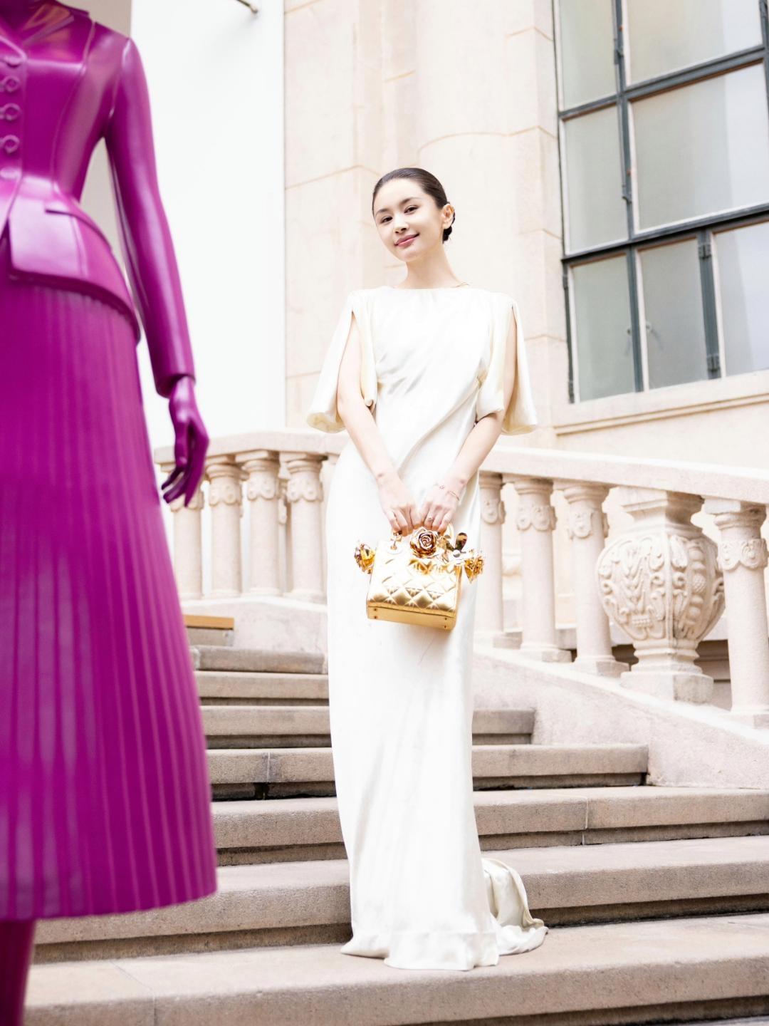 王子文穿香槟色缎面长裙啊! 垂坠感面料裹出清冷骨相,露背设计藏着细闪的项链,连随手拎的金色包包都像把“艺术品”揣在了手里 盘发+淡唇妆衬得她像从复古油画里走出来的大小姐,镜头怼脸笑起来那刻,又甜得像浸了蜜的月光