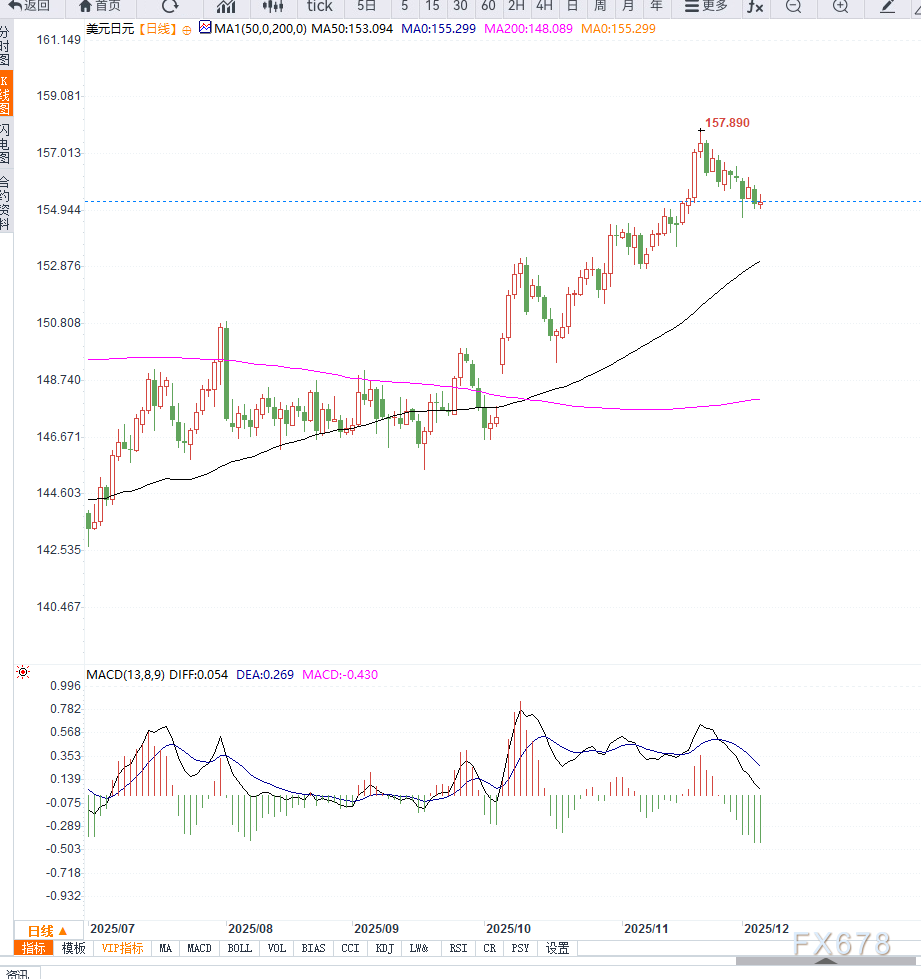 上方第一个关键阻力为155.70(100小时均线),其次是156.00。若多头成功收复该区域,将触发空头回补,使价格有望上探156.60区域,并进一步指向157.00与157.50,最终可能再度测试158.00的强阻力。