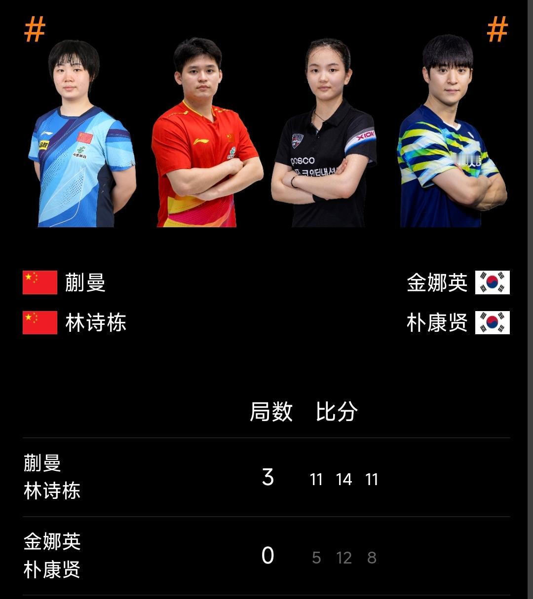 混团世界杯丨中国8-0韩国 2025年成都混合团体世界杯 第二阶段循环赛继续进行中,中国队派出林诗栋、蒯曼、王曼昱、王楚钦等人上场,以8比0总比分完胜韩国队,豪取开赛以来五连胜! 首盘混双,林诗栋/蒯曼以3比0战胜朴康贤/金娜英;第二盘女单,王曼昱以3比0轻松战胜李恩惠;第三盘,王楚钦2比0战胜安宰贤! 中国未派孙颖莎出战,而韩国队也未派申裕斌和张禹珍出战,看来韩国队将硬实力选手留在战日本、德国队!