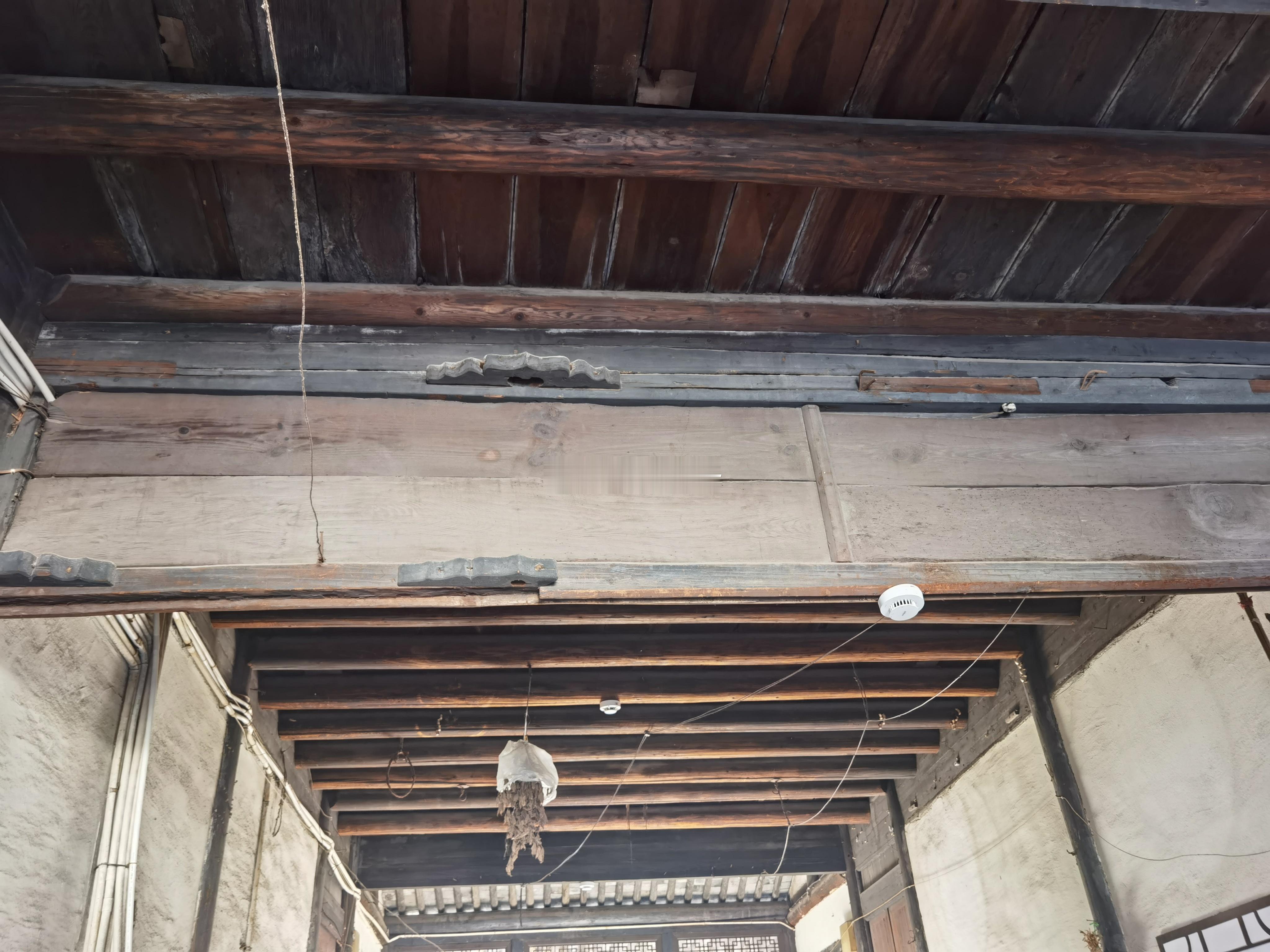 八字桥旁的古民居,你看堂沿上面的板梁上,还有当年放牌匾的痕迹。这里以前就是一个大