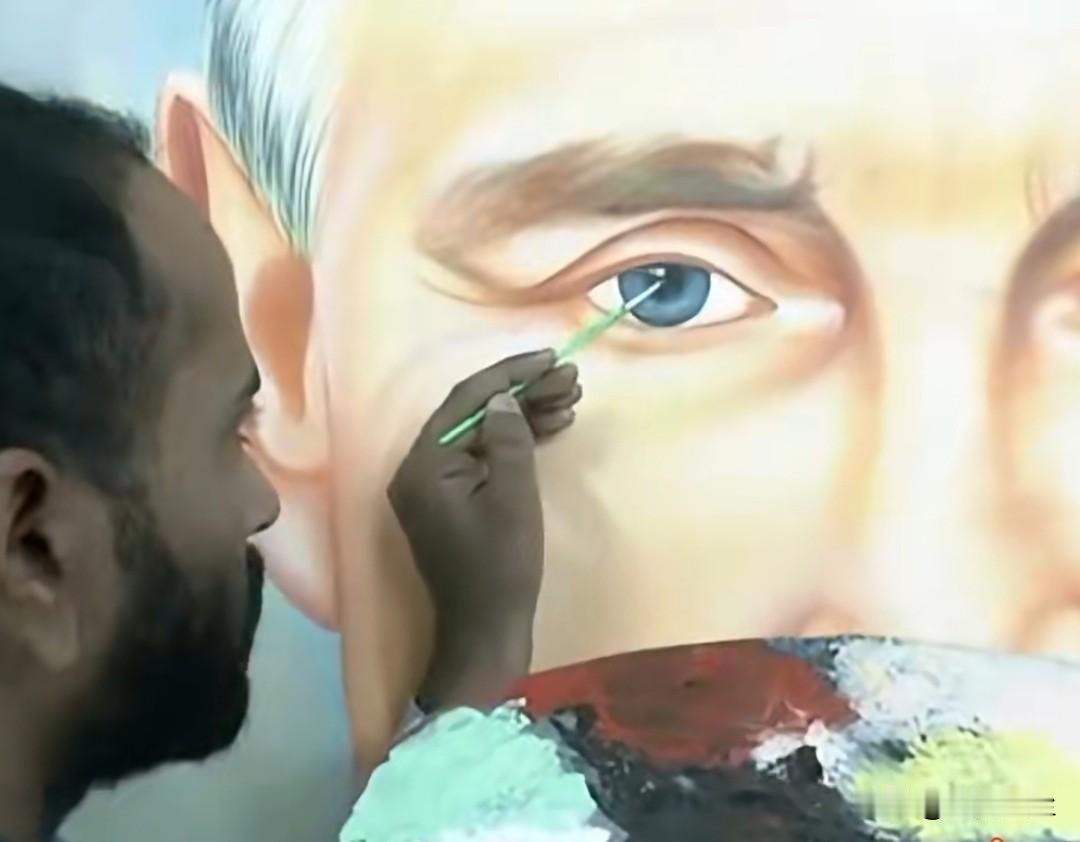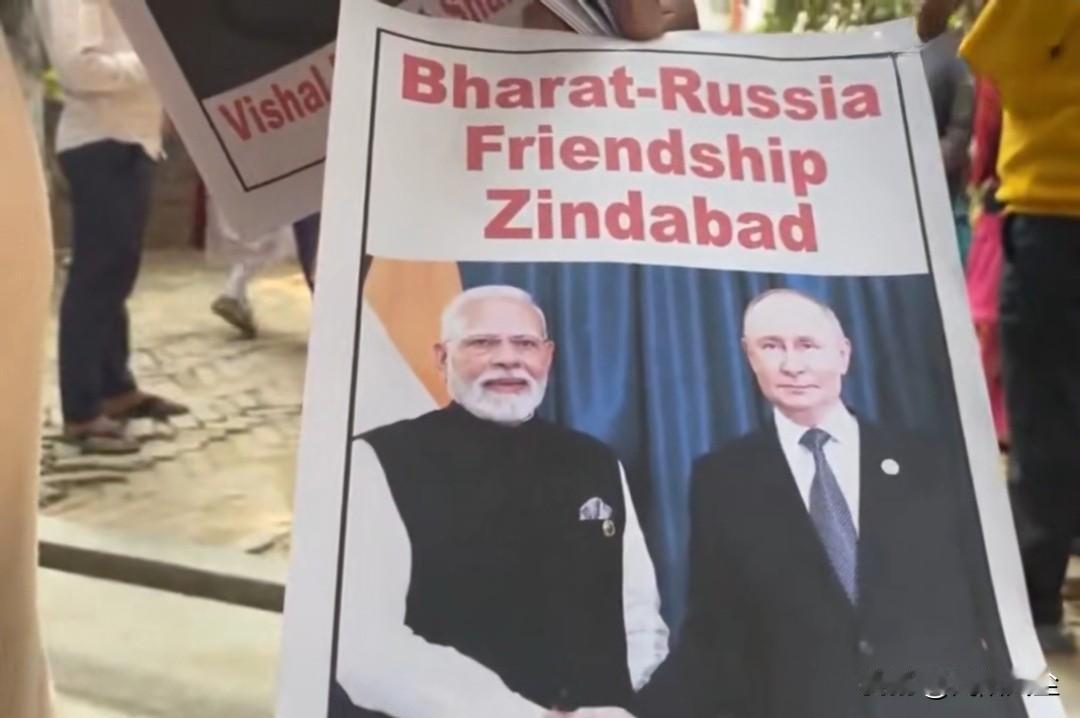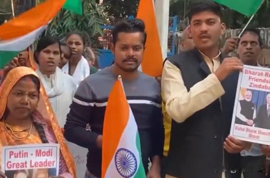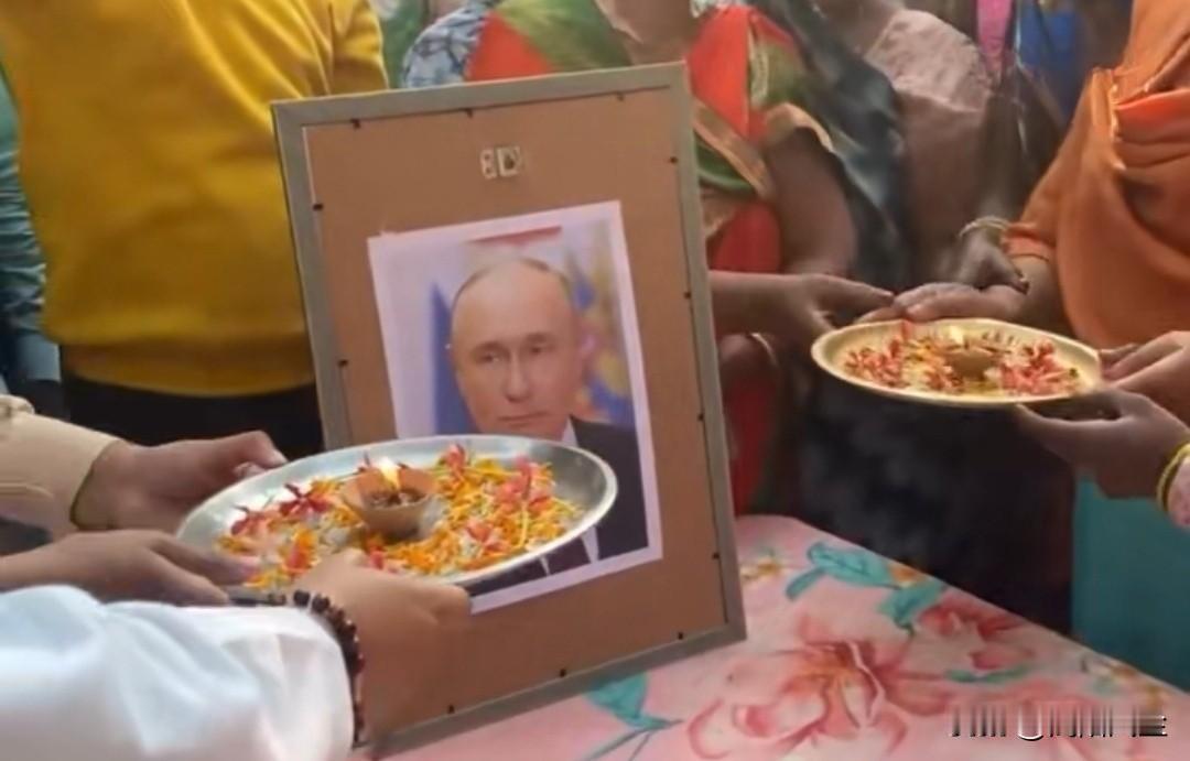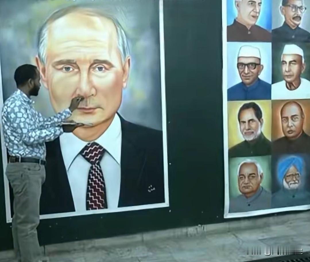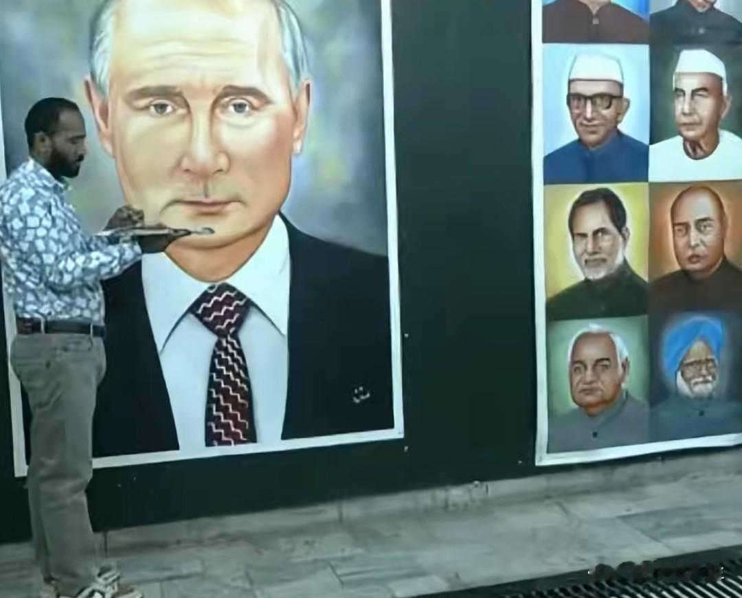 印度北方邦瓦拉纳西,当地民众在普京访问印度前夕举行祭祀庆祝仪式。 印度艺术家贾格乔特·辛格创作了一幅高达7英尺的普京巨幅画像,画像上方题有“友谊的回响”字样,以此表达欢迎普京访问印度。 普京上一次访问印度是2021年12月6日,时隔四年后,普京再次访印。