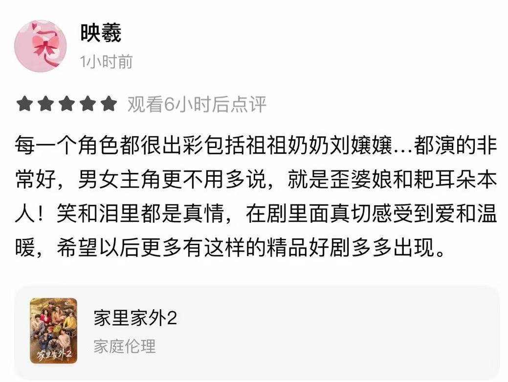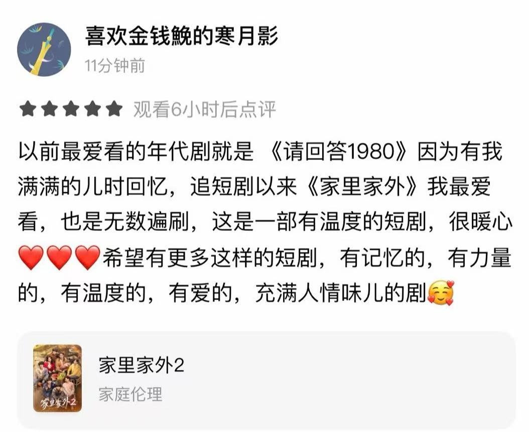 家里家外2 没想到红果评论区这么热闹,都是真实观剧感受,还能跟主演互动,加上周深的OST加分,追起剧来更有劲儿了~