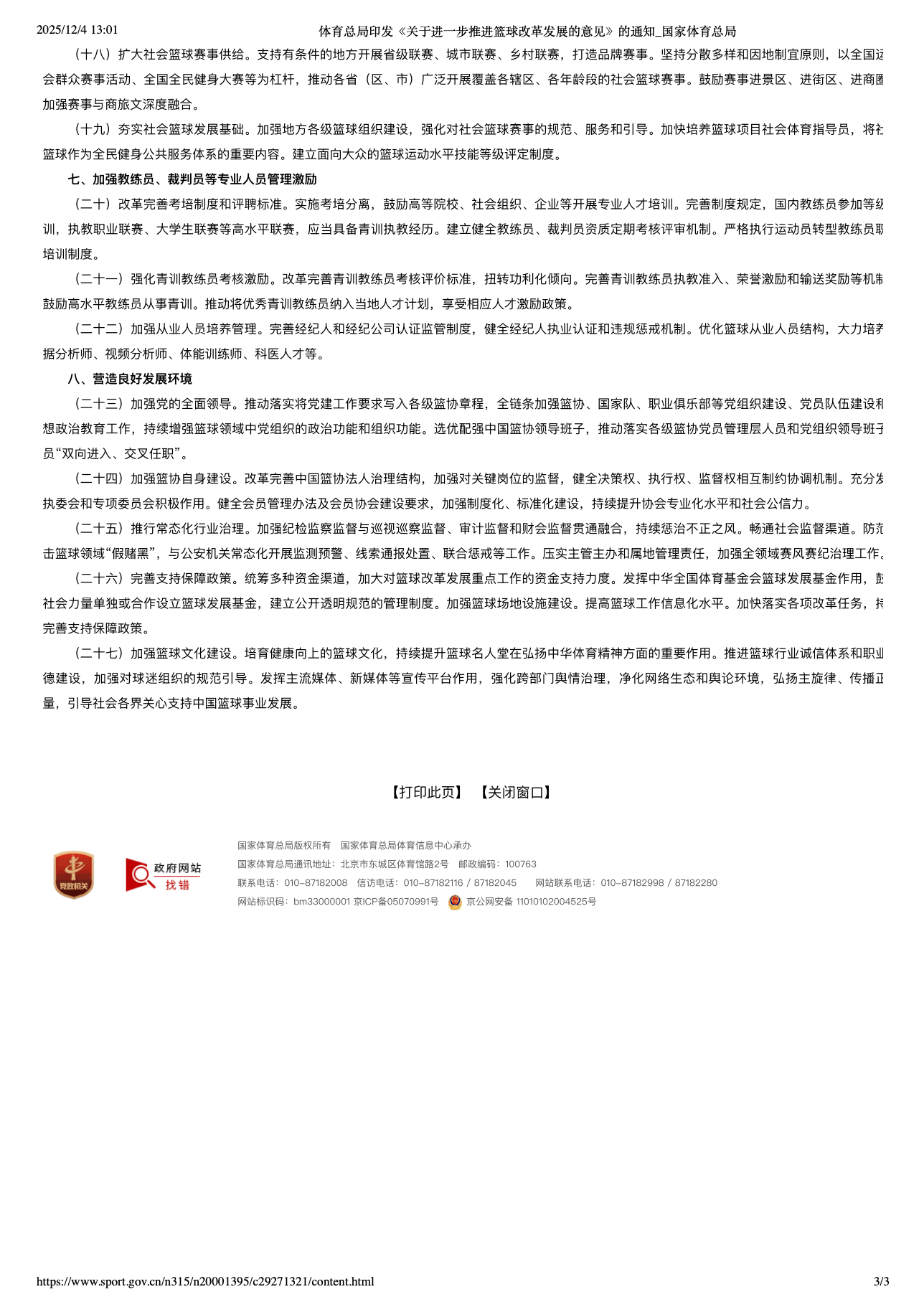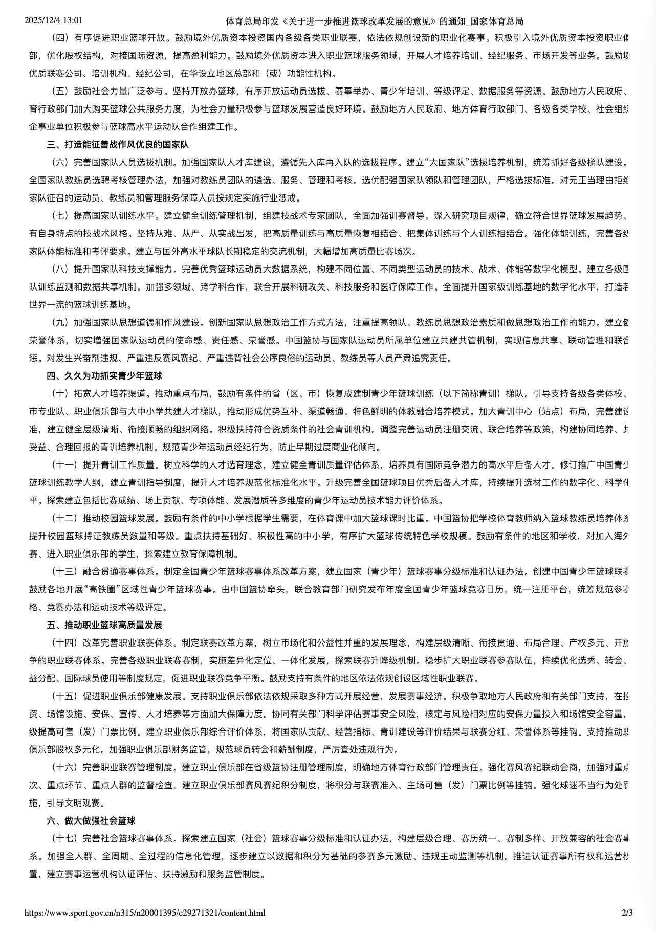 【体育总局印发《关于进一步推进篮球改革发展的意见》的通知】完整版👇