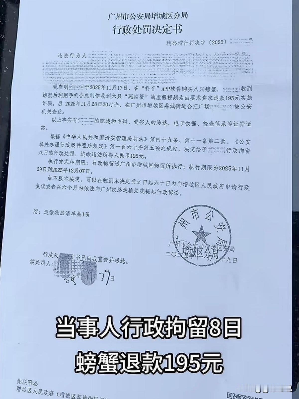 骗你又怎样!网购螃蟹造假后续:店主找人维权,顾客身份惊呆众人 怎么样!骗你又怎么样![嘘] 最近,一起网购纠纷有点特别,一位苏州的大闸蟹店主,差点栽在了“高科技”造假上。 事情发生在十一月,店主给广州一位叫“萱女士”的顾客寄了一箱大闸蟹,螃蟹是精心挑过的,包装也很专业,就为了防止路上出问题。 但让人没想到的是,快递显示签收后仅仅十三分钟,“萱女士”就发起了退款申请,理由是收到的八只螃蟹里,有六只已经死了。 店主一看就觉得不对劲,她养了这么多年螃蟹,对螃蟹的状态再熟悉不过,对方发来死蟹照片,她一眼就看出问题:死掉的螃蟹,蟹脚应该是松软下垂的,但照片里那只蟹的脚,却翘得老高。 为了进一步核实,她要求对方拍段视频,视频发过来了,但新的破绽又出现了,对方发了两段视频,一段里显示死的公蟹多,另一段里却显示死的母蟹多,前后矛盾,这让店主更加确信其中有诈。 为了弄个明白,店主联系了一位常做维权调查的博主,委托他去广州实地看看,调查人员找到当地派出所,一起按地址上门核实,结果发现,所谓的“萱女士”,其实是一名男子,面对询问,这名男子承认,自己用AI技术合成了死蟹的视频,就是想骗个全额退款。 最终,这名男子被依法行政拘留了八天,那一百九十五元的退款也被追回。 这个案子不大,但挺典型,它反映出一种新型的、技术含量更高的网络诈骗模式,过去可能是用修图软件P张图,现在AI技术门槛降低,已经能用来生成足以乱真的视频了,这对于依赖图片和视频证据的电商平台纠纷处理机制,是个不小的挑战。 看到这起“AI死蟹”骗局的反转,网友们的评论炸开了锅。 “看完惊掉下巴!AI技术居然被用在这种地方,真是防不胜防。” “最绝的是店主发现两段视频里死蟹公母数量对不上,这个细节太重要了!以后遇到类似情况,商家也要学会留个心眼。” “现在AI生成视频的技术确实越来越真,但仔细看还是能发现破绽,比如视频里螃蟹的死亡姿势太一致,现实中不可能每只都死得一模一样。” “虽然我是买家,但坚决支持店主维权,这种骗保行为最终会让所有消费者买单,平台应该严惩!” “最让人担心的是,这种骗术会不会让真正需要维权的消费者被冤枉?平台需要建立更完善的鉴定机制。” “为195块钱换8天拘留,这骗子真是亏大了,所以说做人要诚信,耍小聪明迟早要栽跟头。” 这起事件最终迎来正义结局,既彰显了法治力量,也印证了“诚信经营终有回报”的道理,在科技快速发展的今天,如何平衡技术创新与诚信建设,是各方都需要思考的课题,您在网购时是否遇到过类似纠纷?对于防范这类新型诈骗有什么建议?欢迎在评论区分享您的经历和看法! 信息来源:扬子晚报