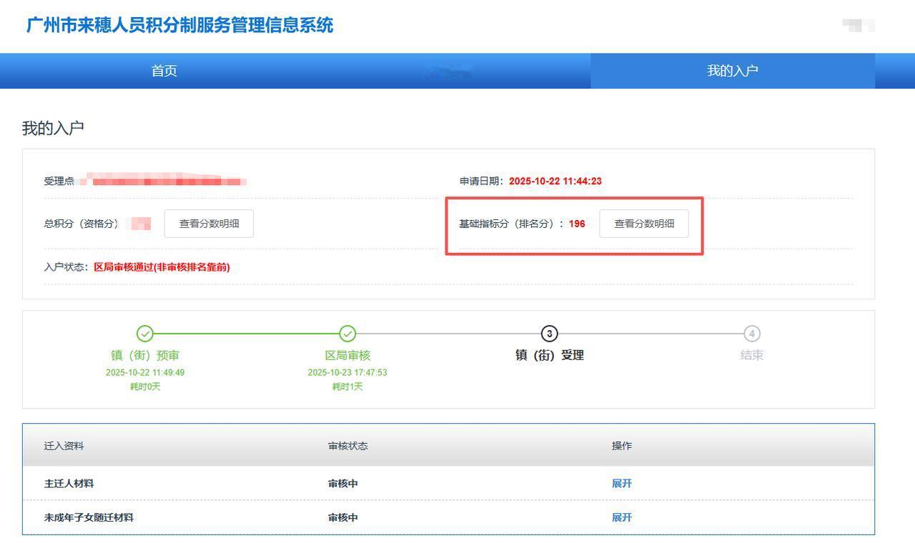 快讯:2025年广州积分入户可以登录系统查排名状态了 基础分196分部分排名靠前