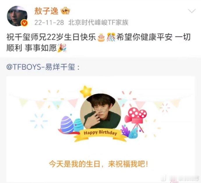 敖子逸连续10年为易烊千玺庆生敖子逸这波长情太圈粉了!连续 10 年为易烊千玺庆
