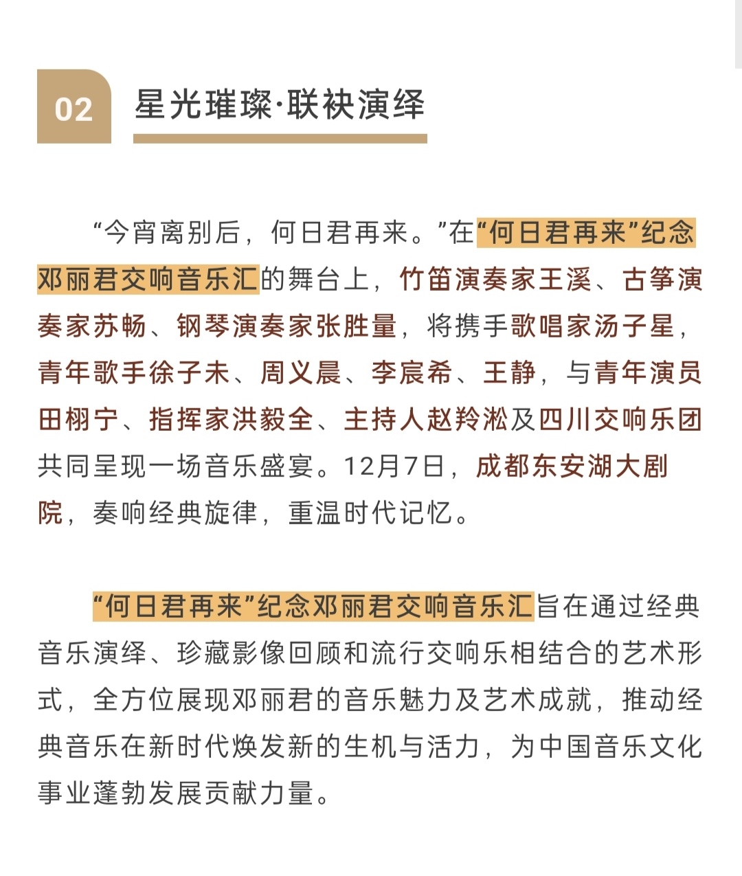 田栩宁官宣纪念邓丽君交响音乐汇田栩宁官宣东安湖音乐季开幕式 “何日君再来”纪念