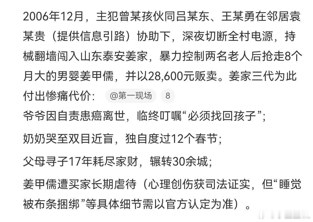 入室抢婴案主犯被判死缓后当庭大骂 气死我了!脸都不要了?入室抢婴的主犯判了死缓还闹,半点儿悔意没有!姜家三代被他毁成什么样了?爷爷自责到离世,奶奶哭到失明,父母找了17年!被拐的孩子还遭了长期虐待!入室抢婴这罪比普通拐卖恶百倍,直接死刑都算轻的,真要气炸了!!!