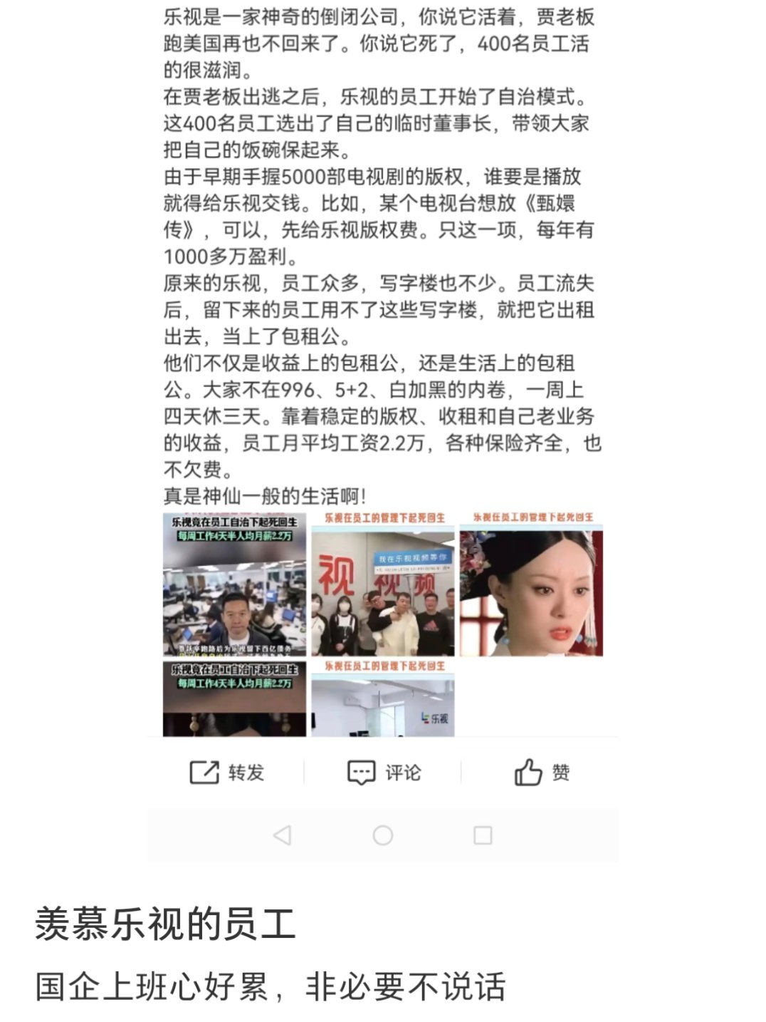 乐视网总市值仅剩12亿乐视也是挺神奇的公司,创始人在国外,靠几部热剧版权和出租写字楼养活着公司员工,还实行了4天半工作制…现在企业市值12亿,负债238亿,却想着拿1.8亿炒股!乐视网负债238亿拟花1.8亿炒股