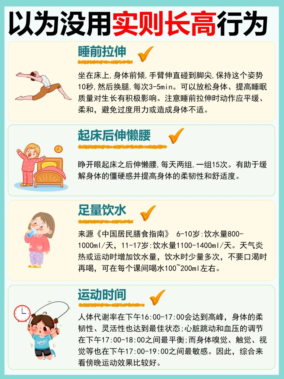 儿童身高60-70%取决于先天因素,但后天的30%-40%也能帮孩子成长逆袭。 冬季❄是孩子身高快速增长的关键时期,被誉为“追高黄金期”。这个时期,孩子的身体发育较为迅速,营养的摄入直接影响到骨骼的生长和身高的增加。 . 这里有12个长高的关键行为,主要包括:营养补充、充足睡眠、适量运动等,一定要带孩子做哦~(详情见图)~ .