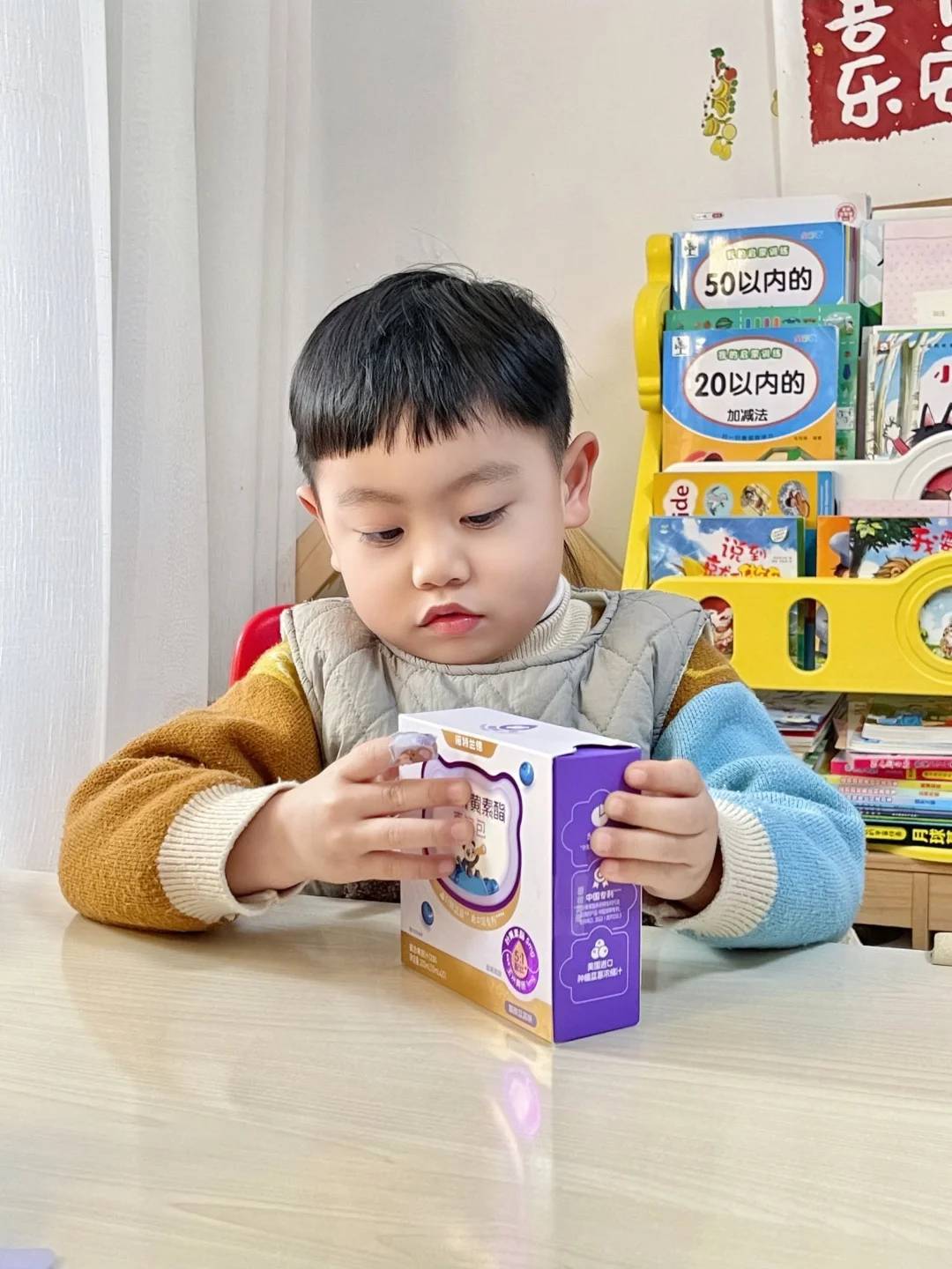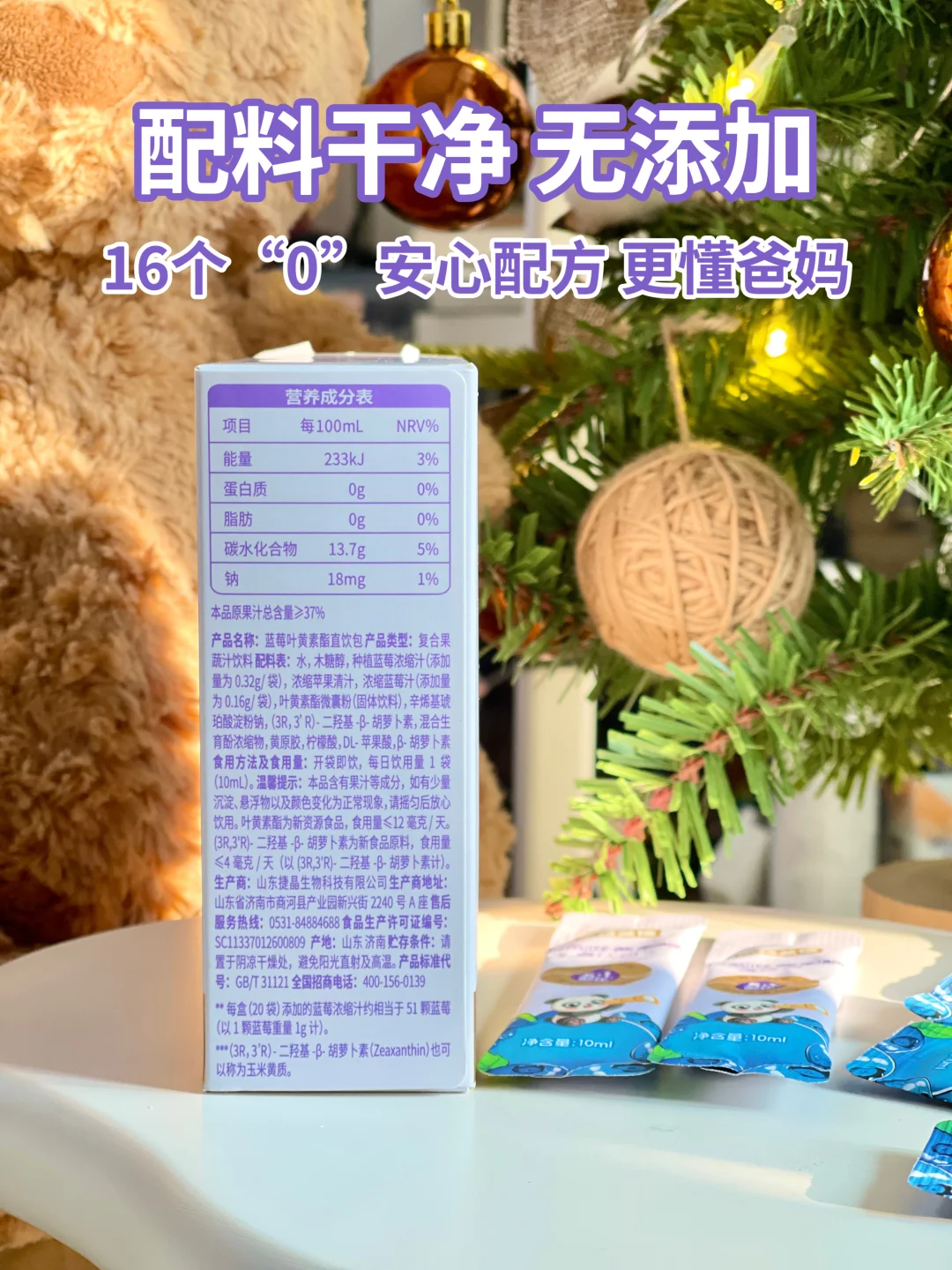 它里面的成分也是科学配比的,叶黄素酯5mg+玉米黄质1mg,2大营养CP一次补全。毕竟是宝宝吃的东西,配方我也深扒过的。16个0安心配方,不含8大常见食物过敏源,孩子可以放心心的吃。口感是酸酸甜甜的蓝莓味,孩子喜欢吃。真心建议有娃家庭都备上这款叶黄养,每天一条,方便又省心~