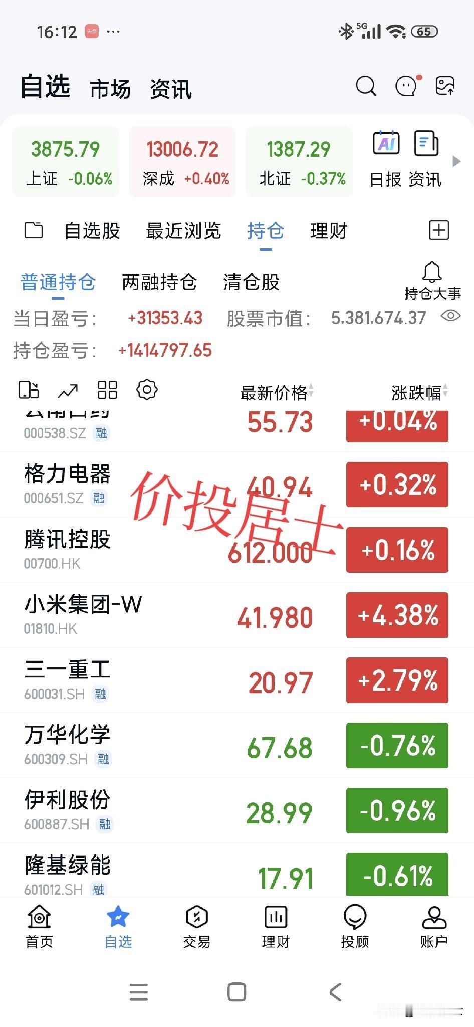 这会港股收盘了!今天大盘也是微微的回调,我不同意一些股评说的4000点是大顶的观点,也不同意一些股评说的会有深度回调的观点,4000点只是个心理关口,不是什么大顶,我们是要建设金融强国,请问4000点够我们建设金融强国的吗?显然不够吧! 既然如此,这轮牛市就没有结束多理由,还有人说中国的股市从历史上来看牛短熊长,但那个是过去!美股在这轮长久之前也是震荡了很久,投资是投资的未来预期,而不是投资的现在与过去。 就像我们过去房地产20年左右的牛市没有启动以前,大多数人也没有认为会有这么久的牛市,道理都是一样的! 我是个相信我们自己祖国国运的人,这个是我做投资的最重要的逻辑之一,我不会去理会那些生活和股市里不如意的人天天发的牢骚,感觉那样真没意思,玩不起就别玩,又没人逼我们来炒股[祈祷]