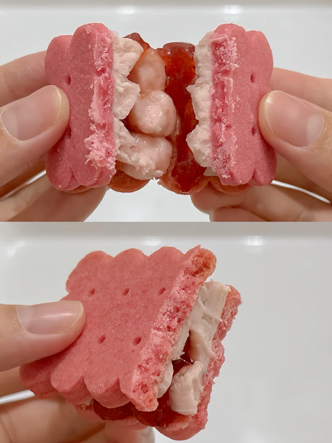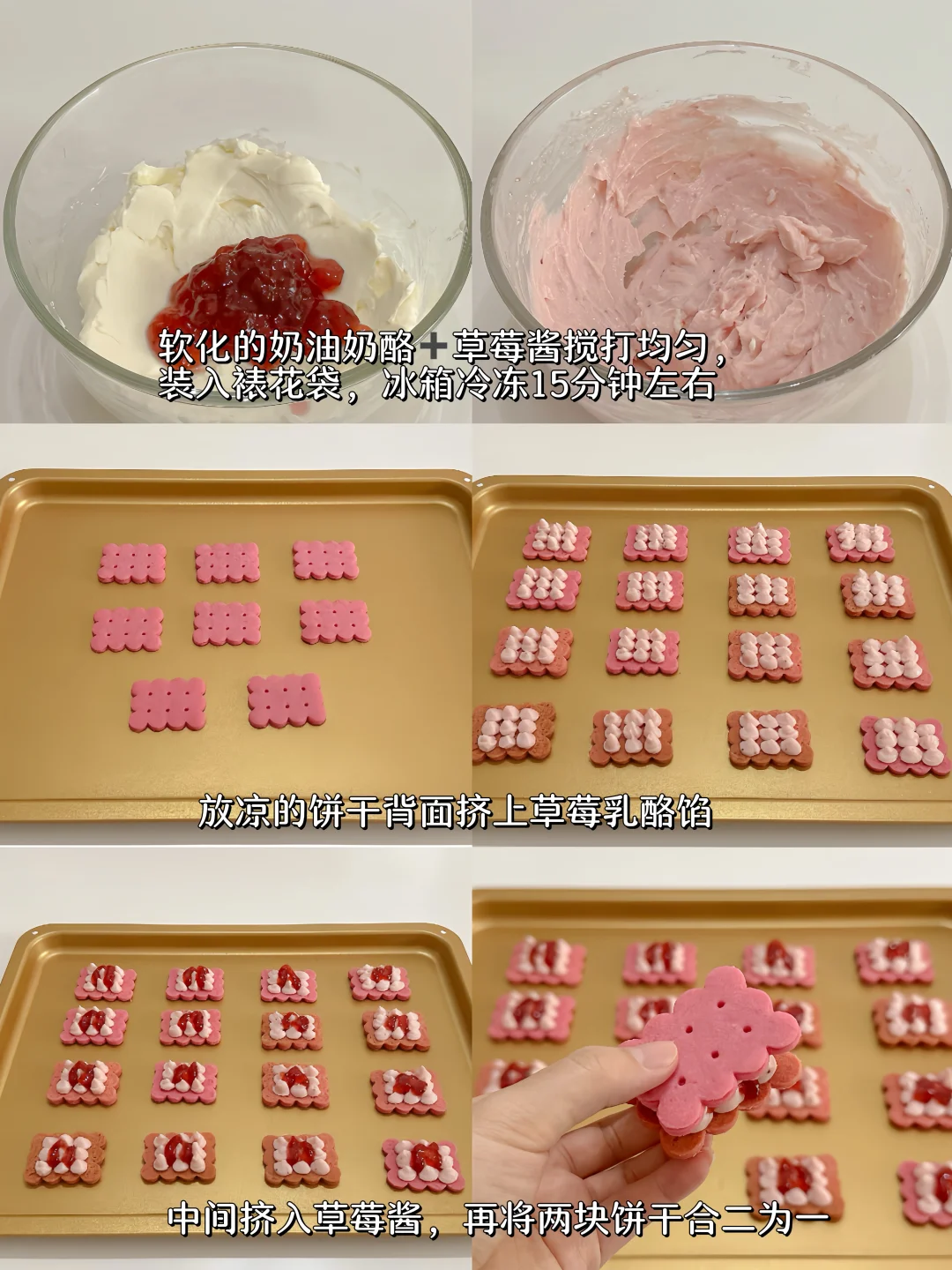 酸甜可口的草莓🍓乳酪夹心饼干,真的太好吃了~😋