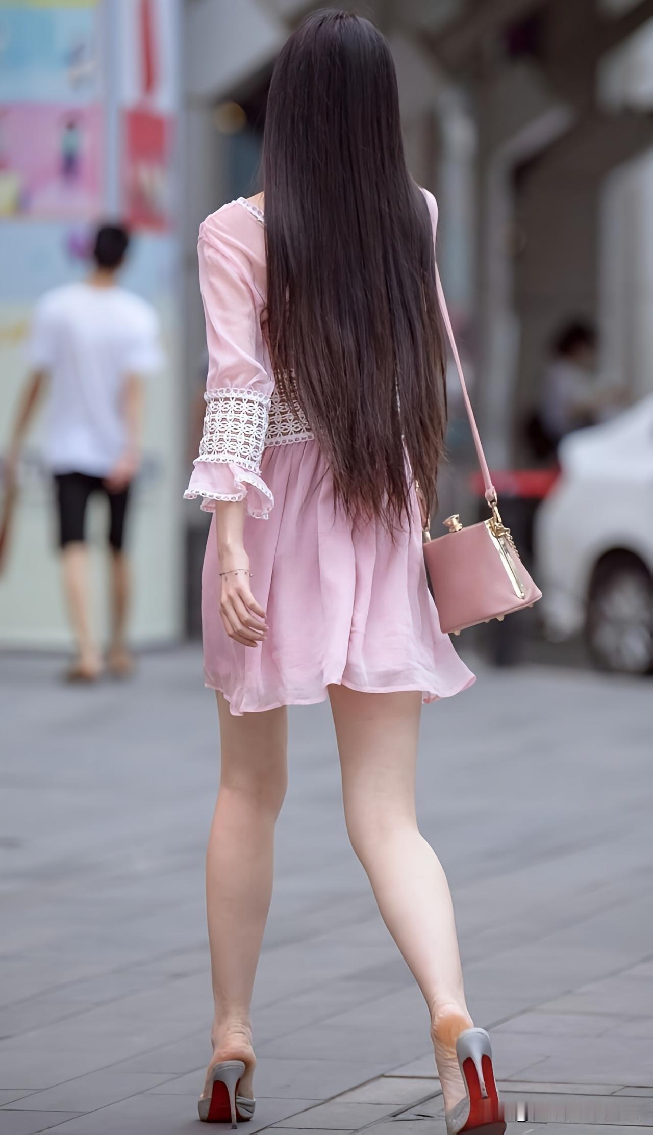 粉嫩少女风穿搭,轻盈飘逸的粉色连衣裙,搭配精致小包,优雅出街