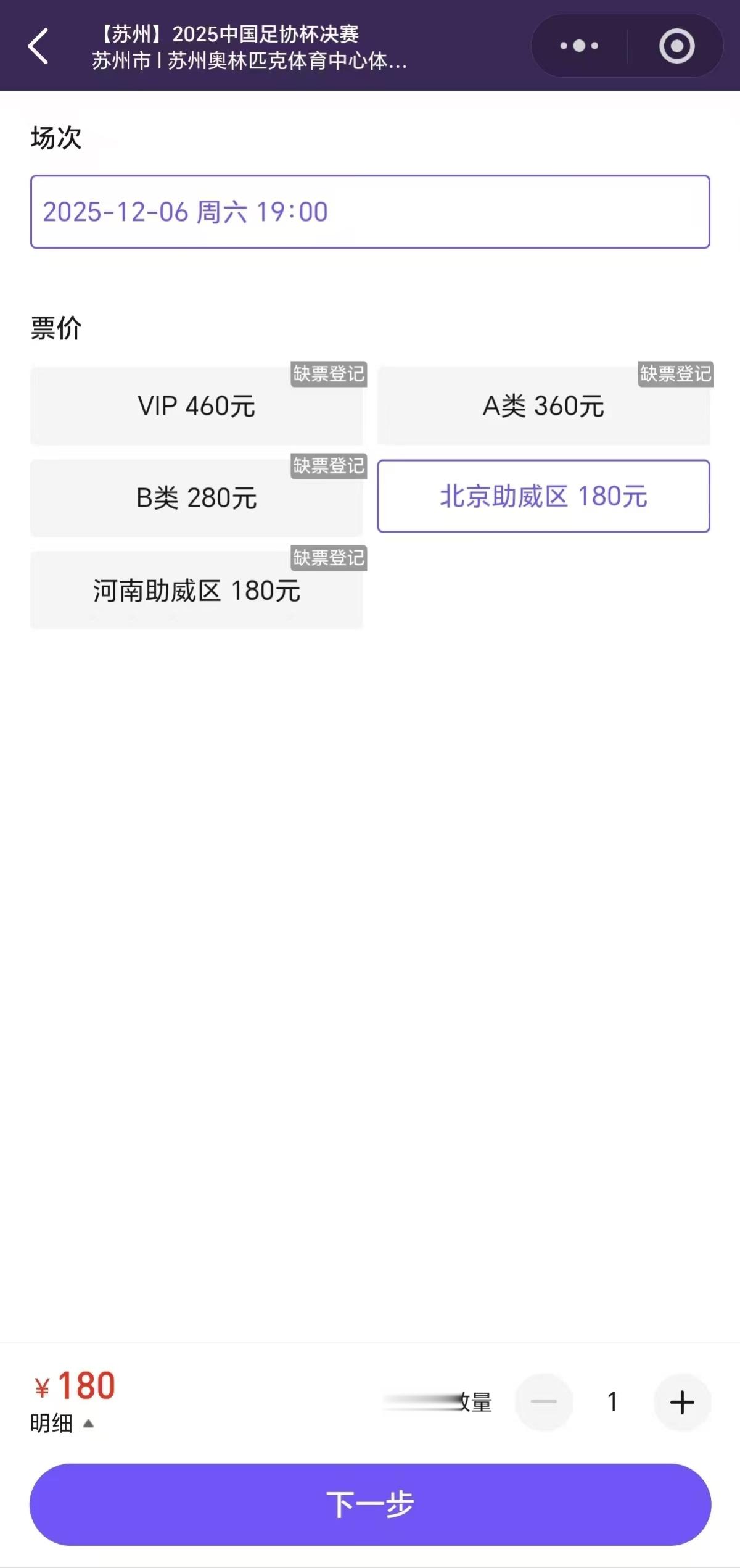 12月4日,记者在一家球票销售平台上意外看到,北京助威区竟显示仍有余票,其他区域则均是无票状态。由此可见,北京球迷的热情远不及河南。