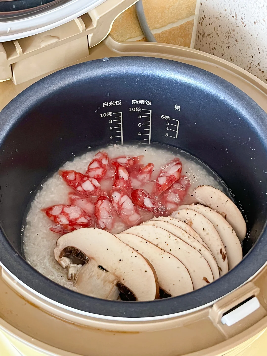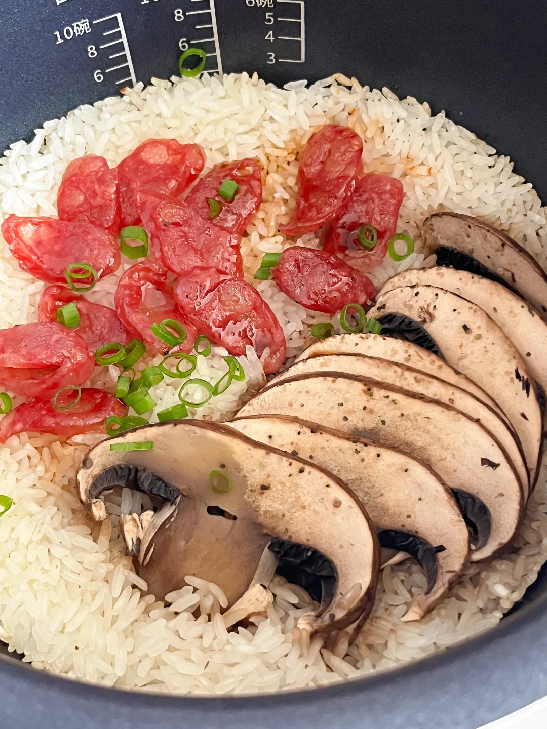 还是懒人焖饭法 把腊肠和蘑菇丢到电饭煲里