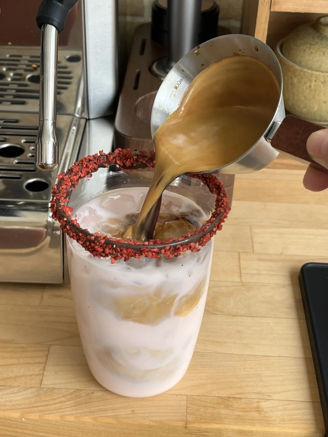 还做了粉红的草莓拿铁和热拿铁
