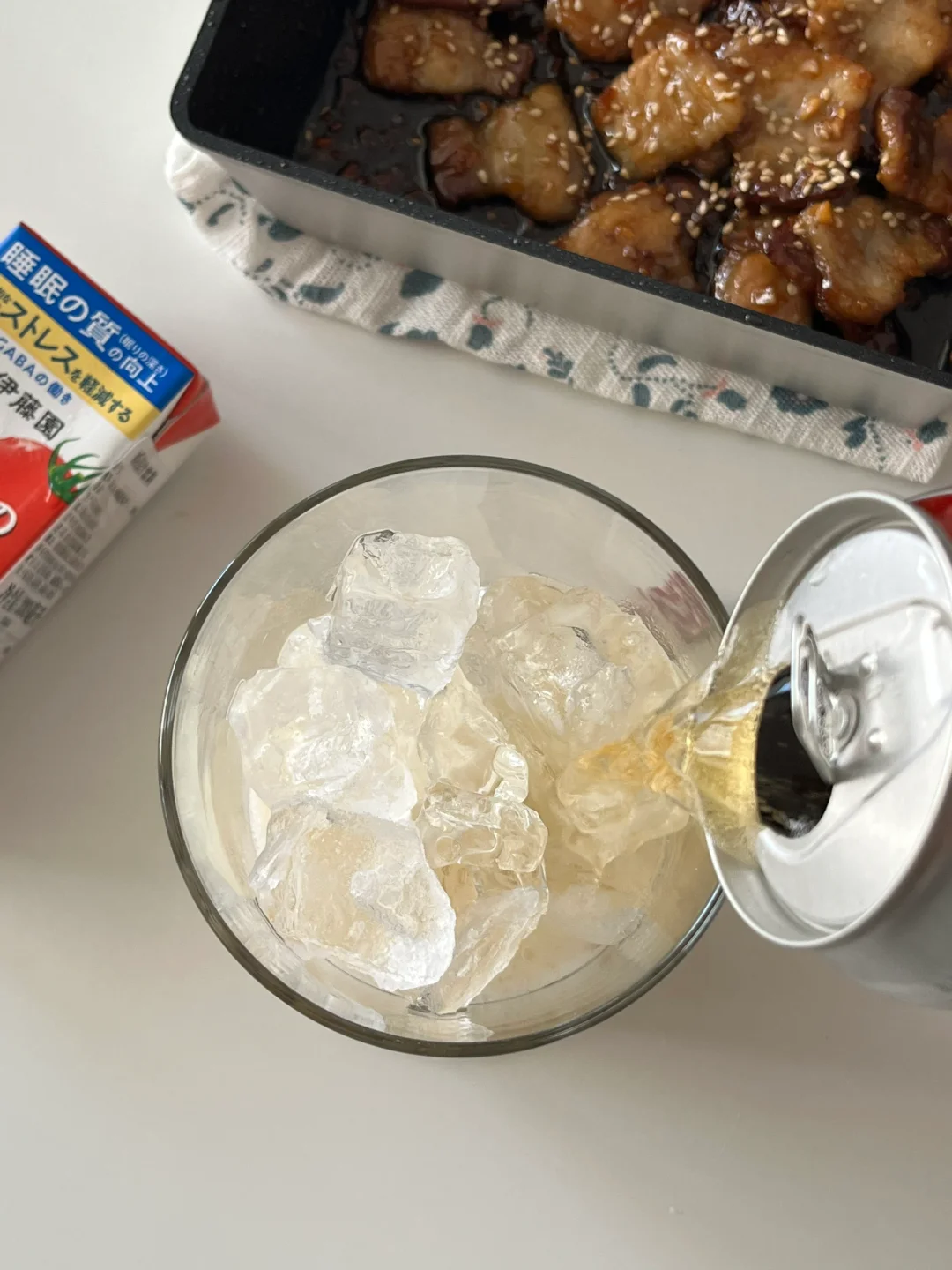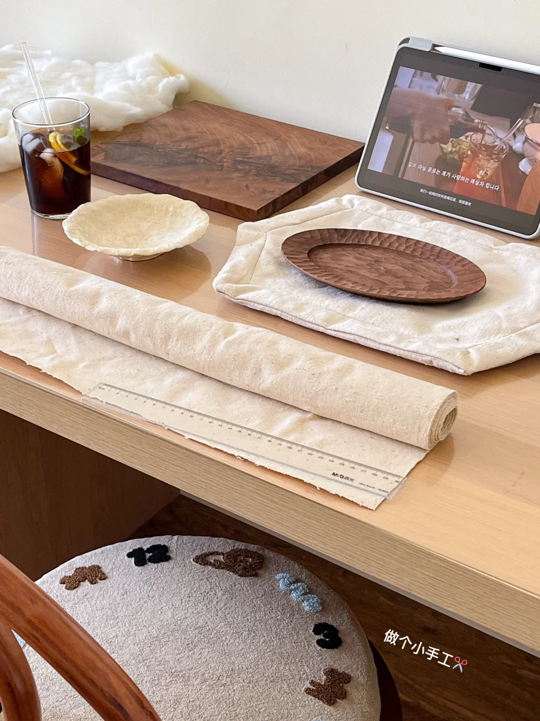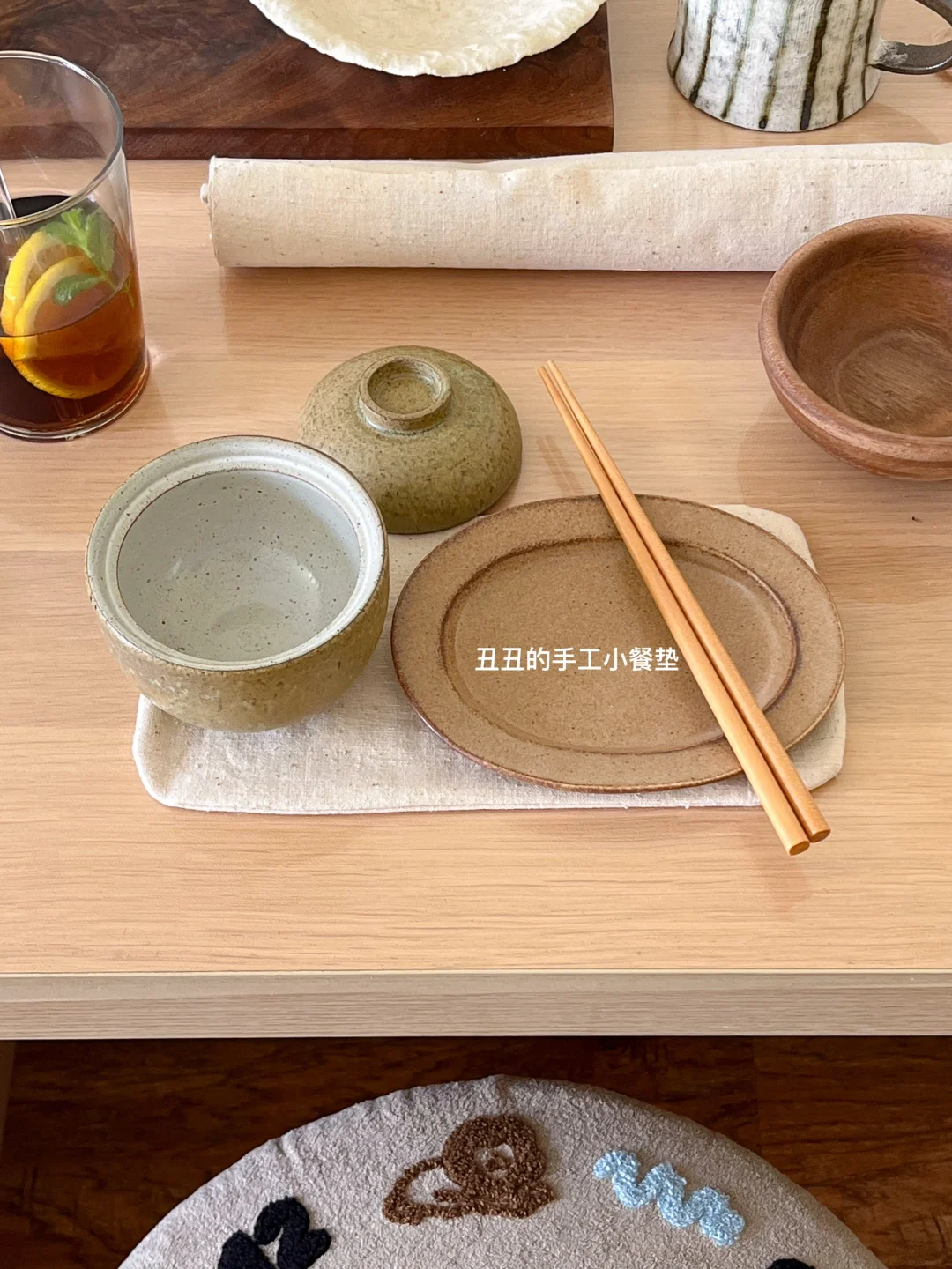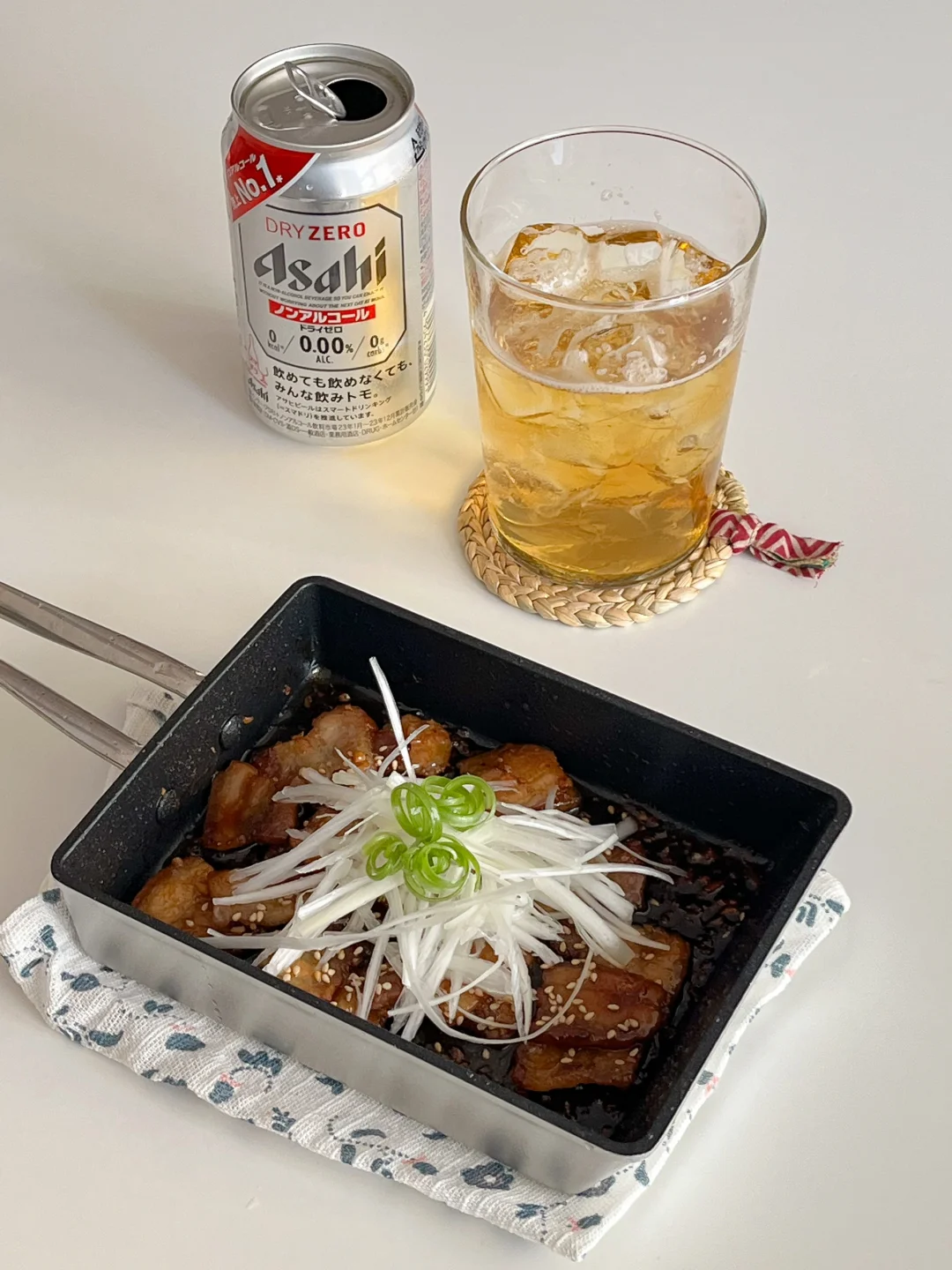 夏天怎么能没有冰啤酒呢 尤其是和烤五花肉一起 下午还要上班 就开了一罐0酒精 一直在用的餐垫 也是自己做的 又做了一个小小的 放茶杯和茶点 今天幸福的瞬间: 煎油滋滋五花肉🐷 安静做手工✂️ 在杯子里倒冰啤酒🍻
