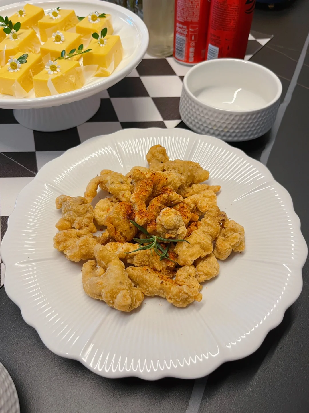 好好吃饭,用心生活,照顾好自己,照顾好家人~ 把我们擅长的事情用心做好,比如做饭这件小事~ 【今日菜单分享】 🥢荔枝虾球 🥢芥末汁生蚝 🥢油炸小酥肉 🥢酱汁面藕 🥢青汁绿玫(腌黄瓜) 🥢芒果慕斯 芒果慕斯上次做了没吃够,今天又安排上了,步骤比之前简单了很多,具体可以参考前几天的图文教程~ 不粘锅用久了,也想体会一下小铁锅的快乐,这款种草了挺久的图宾小铁锅安全下车~煎,煮,炸,炒样样行,总得来说是个懂事的小铁锅~别看它小小一个容量其实蛮大的,收到后先开锅,后期再使用起来真的不粘~