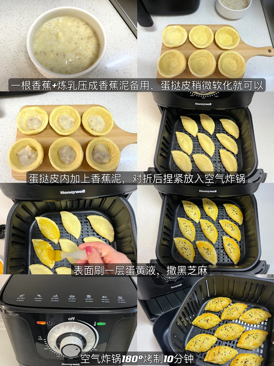 【蛋挞皮香蕉酥】:酥掉渣呀,一看就会而且比蛋挞还要好吃大家快试试,一口爆浆