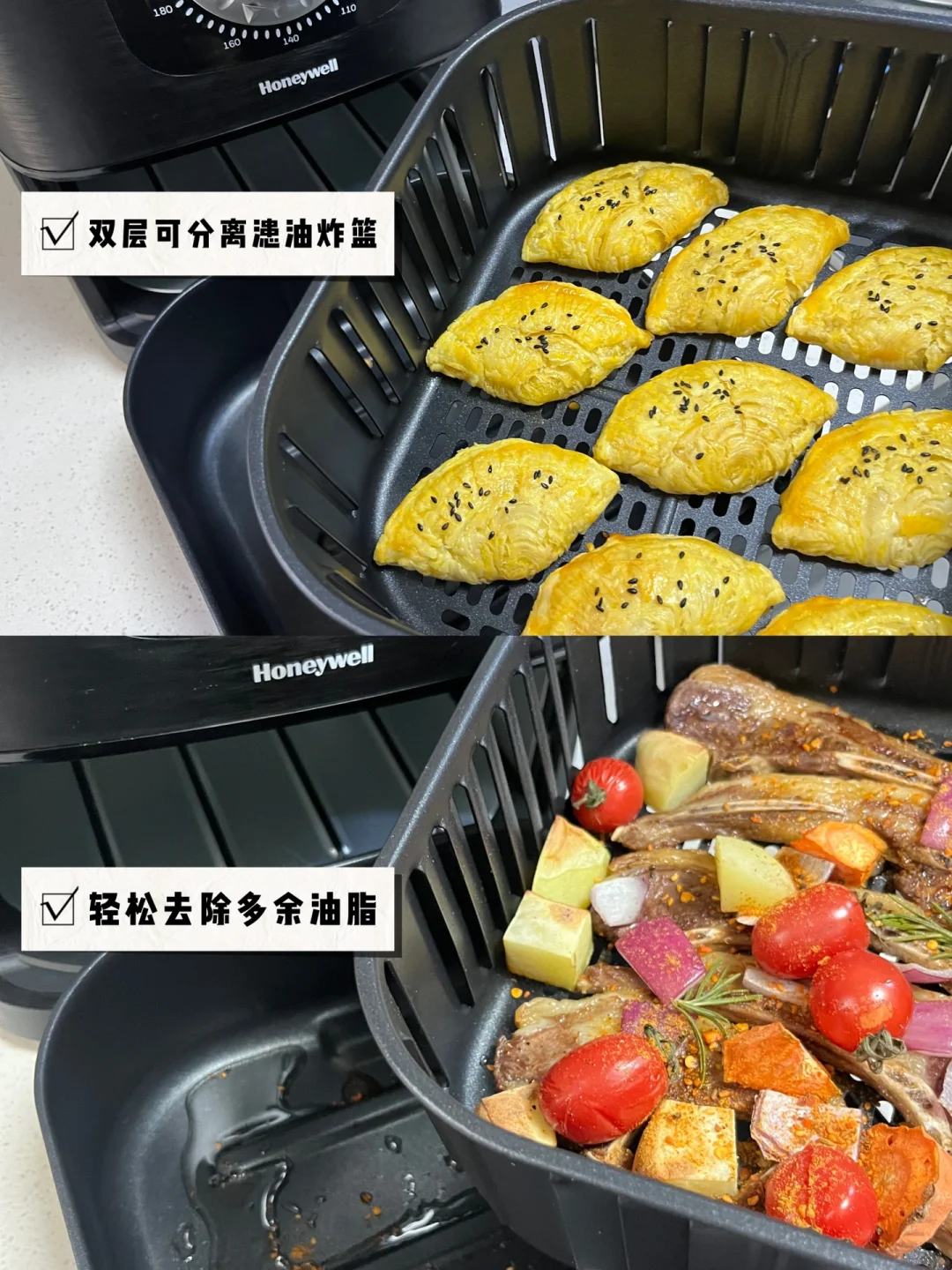 最近沉迷空气炸锅美食,把之前收藏的很多菜单都试了一遍,今天的三个菜都是用霍尼韦尔空气炸锅完成的,快手,简单,味道又赞~而且最喜欢它的双层可分离炸篮设计,烤肉的时候能直接过滤掉多余的油脂,这样吃起来才更健康~金属的腔体加热快,有孩子也可以更放心的使用~烤制食物过程中也不用翻面,一次性完成 真是省时省力。如果最近有想入大容量空气炸锅的宝子,这款真的蛮推荐的~