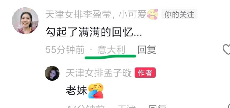 孟子璇官宣退役 李盈莹惊喜亮相评论区! 今天天津女排的自由人孟子璇,在社交媒体发文官宣退役。妹妹李盈莹惊喜亮相评论区,妹妹李盈莹的评论地址显示是意大利。 看来主攻李盈莹目前正在意大利米兰俱乐部,一切都在按照流程计划进行中,虽然米兰俱乐部改没有公布最新的消息,毕竟妹妹李盈莹刚刚到达意大利才四天时间! 自由人孟子璇在天津女排奋斗了四个周期。自由人孟子璇在天津女排有过高光时刻,孟子璇在天津女排获得过很多的排超联赛冠军,全运会冠军,全锦赛冠军,世俱杯亚军,世俱杯季军等荣誉,为天津女排做出了巨大贡献! 然而铁打的营盘流水的兵,天津女排又到了更新换代的时刻了。天津女排的接力棒又传到了下一代更年轻队员的身上! 不管经过多少年,天津女排的精神永在!球不落地,永不放弃!期待天津女排早日走出低谷,再获联赛冠军!欢迎点赞评论关注,拒绝抄袭,天涯体育排球讯