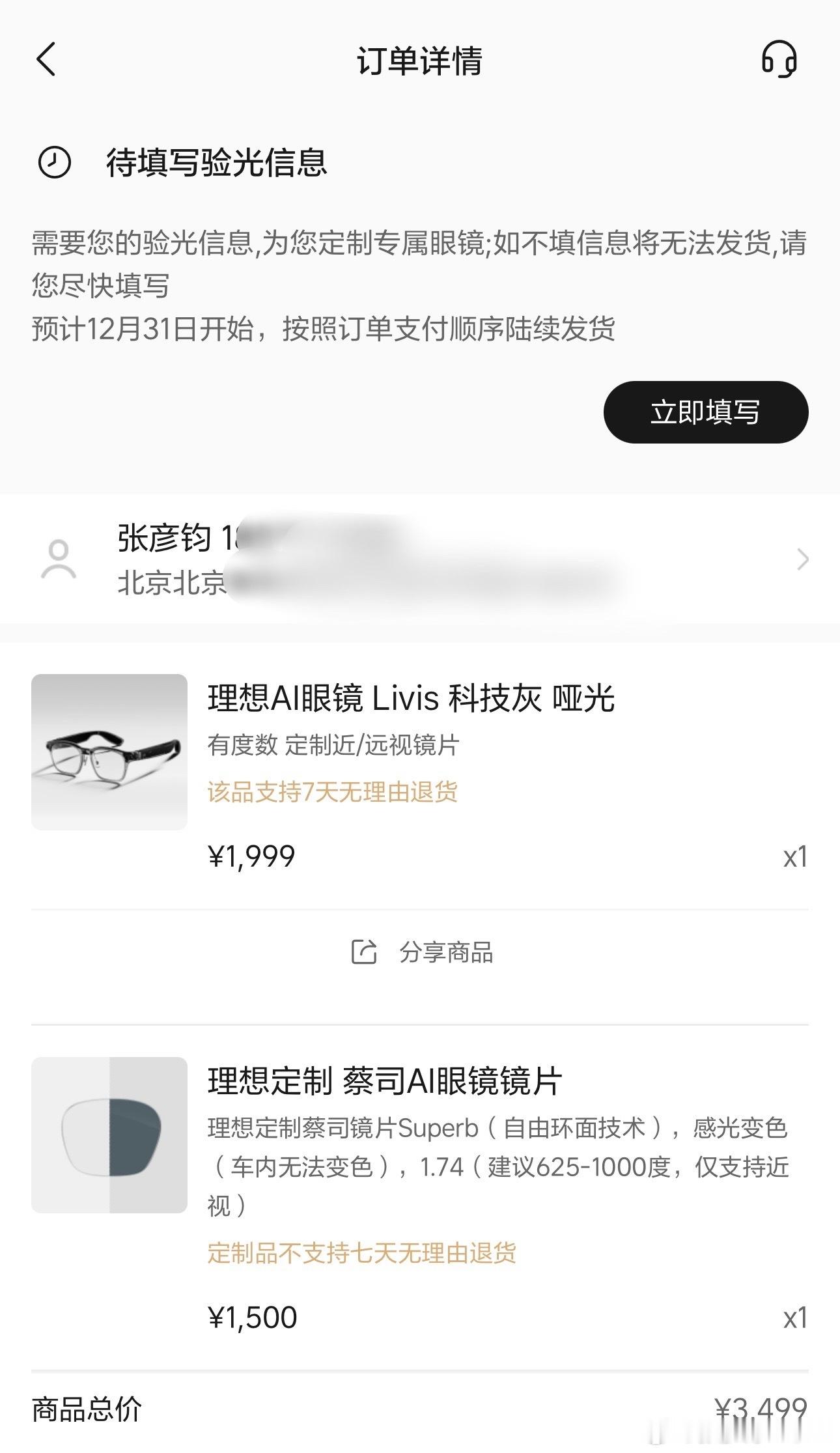 昨天下单完理想的Livis眼镜,今天来验光,弄完在店里借了个电子秤,我说看看36g重量是什么概念?因为眼镜这东西重量很敏感的。找了店里看着最笨重的一个墨镜,拿手里/戴着都觉得挺轻,一上称33g,相当于理想Livis镜架,注意是镜架其实非常非常轻了,毕竟还集成了那么多功能和硬件。我自己的眼镜也是蔡司的片,价格贵除了本身片好外,另一大原因是600度近视、200度散光还做了超薄片,片➕框上称23g。让做眼镜的叔叔估了下我这个度数理想蔡司片大概20g,加上36g镜架肯定超50g了,等到手看看吧,到时候给大家拍个体验。凯文聊车理想ai眼镜livis