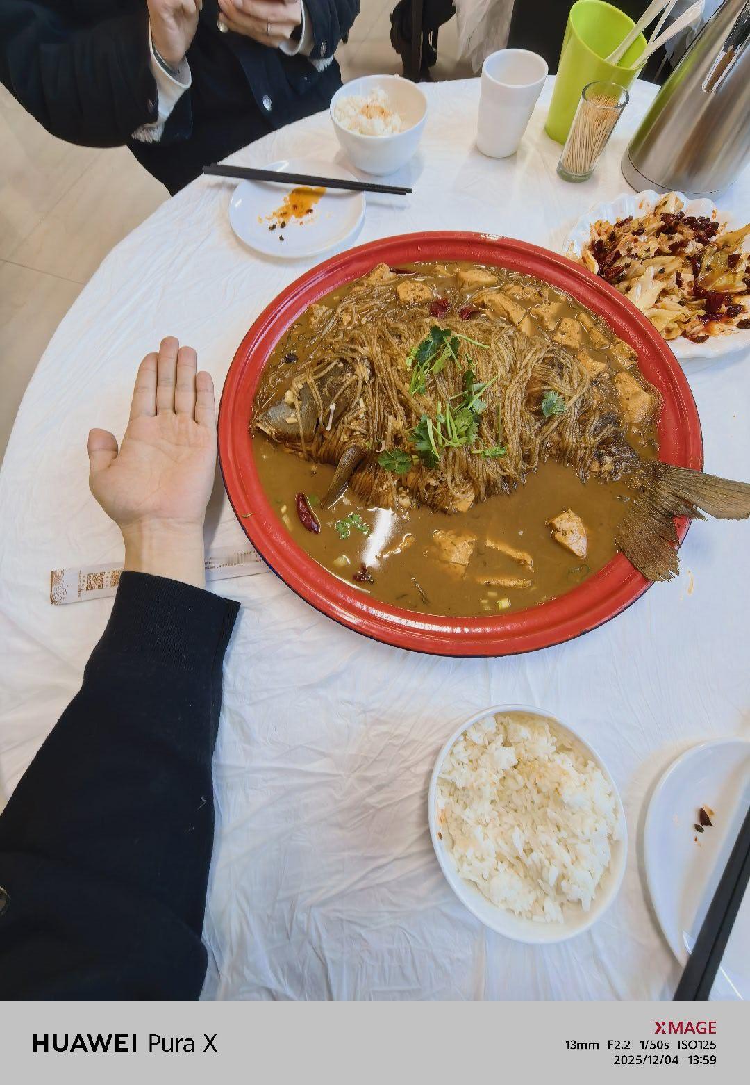 路过得莫利服务区,吃个得莫利炖鱼据说最好吃的得莫利炖鱼就是服务区的正好这服务区充电桩新安的,功率大给问界M8充点电10%开始充的,鱼刚上桌,这边电快充满了外面零下15度,这补能速度相当可以了这老板娘长得还挺好看哈哈哈 哈尔滨·得莫利服务区得莫利镇江南春炖鱼馆