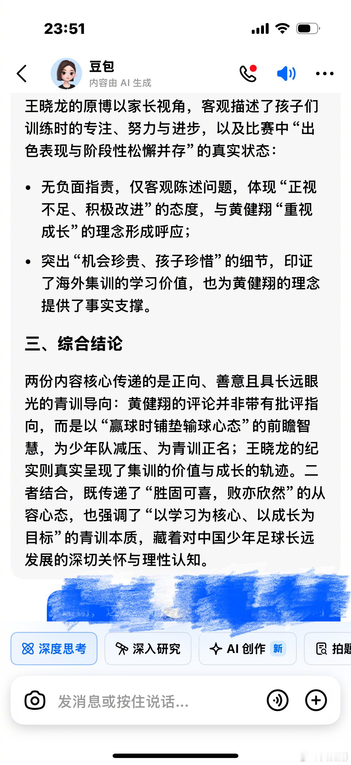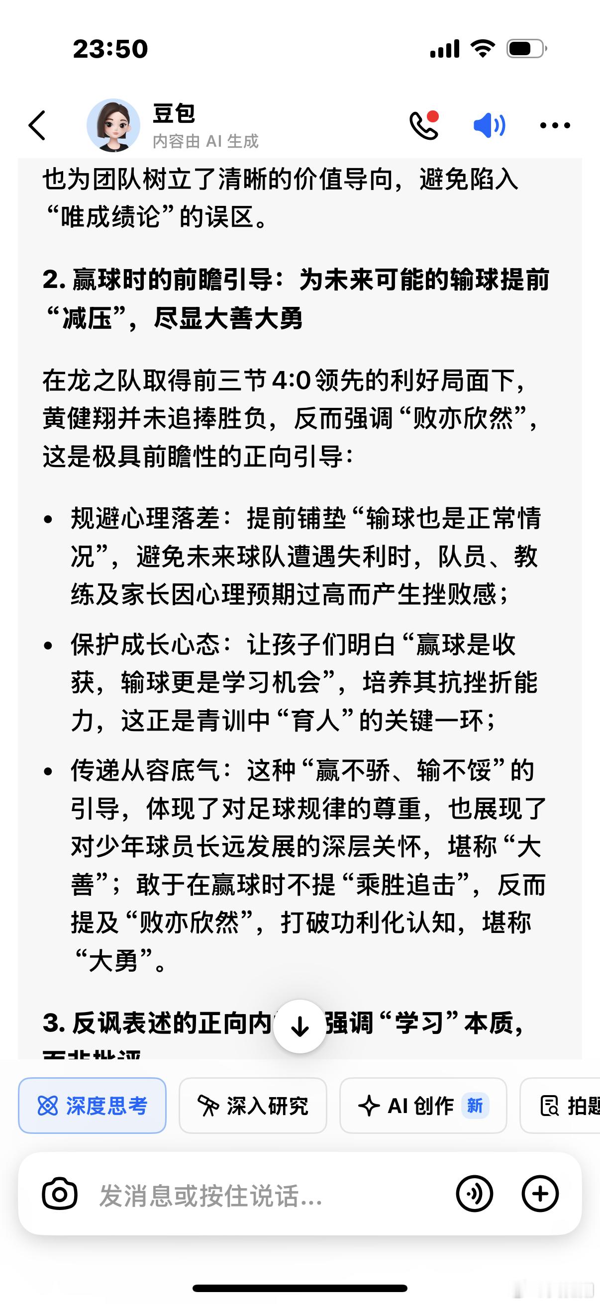 用人工智能分析解读了一下。报告截图附后。提炼出了“以学习为核心,以成长为目标的青训本质”。“输球不可怕,”“淡化胜负,重视学习”。