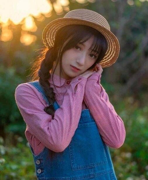 田园少女,草帽轻摇,一片绿意中感受自然的美好。🌿💐🌸