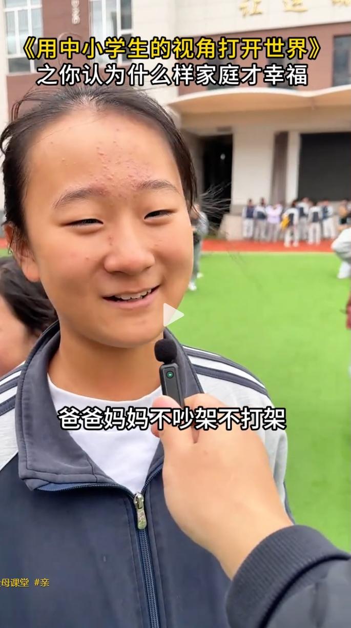 5.2 万赞,15.3万分享,1.2 万收藏。 刚才刷到@闻励秦老师的陪学日记的这个视频火了,视频采访了12位中小学生眼中 “幸福家庭的样子”。 孩子们的回答很实在: 4人认为是 “不吵架”; 3人认为是 “父母陪伴,讲道理,父母亲和,家人和睦”; 1人认为是“不冤枉自己”; 1人认为是“父母对自己好”; 1人认为是“理解并接受爱好”; 1人认为是“不骂孩子”; 1人认为是“不拿孩子做比较”; 原来孩子们要的真不多,甚至非常朴素。 父母之间不红脸,家人之间好好说话,身边有人陪着,对他们来说,有这些就够了。 没有高大上的要求,也不是花里胡哨的讲究,只有最朴实的需求,也是他们安全感的来源。 实现孩子们这些简单的期望,就是给他们成长最好的支持。 你认同吗? (图片由AI生成)