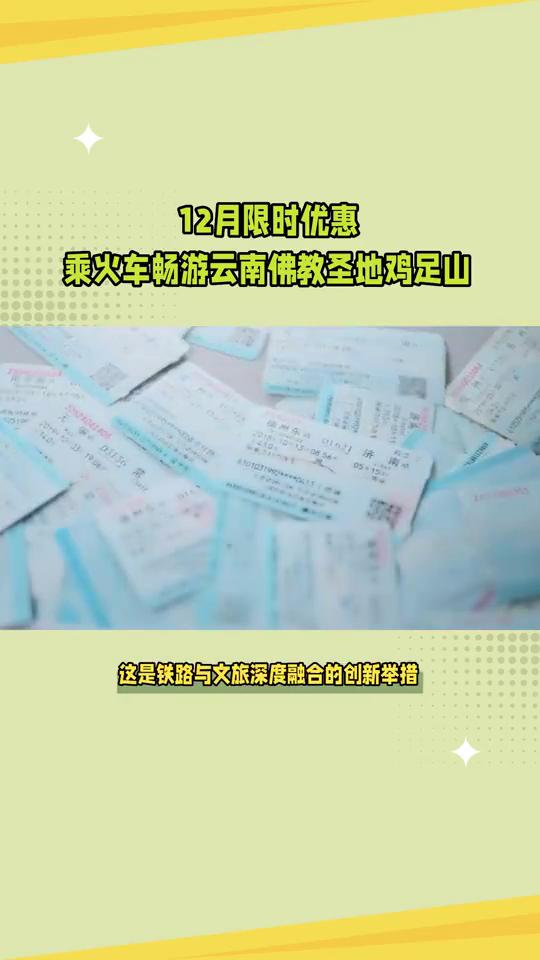 12月限时优惠,乘火车畅游云南佛教圣地鸡足山。 曲靖人重磅福利,火车票秒变鸡足山通行证。12月4日至31日,乘坐曲靖至大理沿线列车的旅客注意,只需出示购票凭证和身份证就能免费畅游佛教圣地鸡足山。 这是铁路与文旅深度融合的创新举措,由宾川鸡足山景区与昆明铁路局联合推出,涵盖宣威、曲靖、富源等地始发至大理的所有车次,一张车票双重享受,快来体验坐着火车游云南的别样旅程。