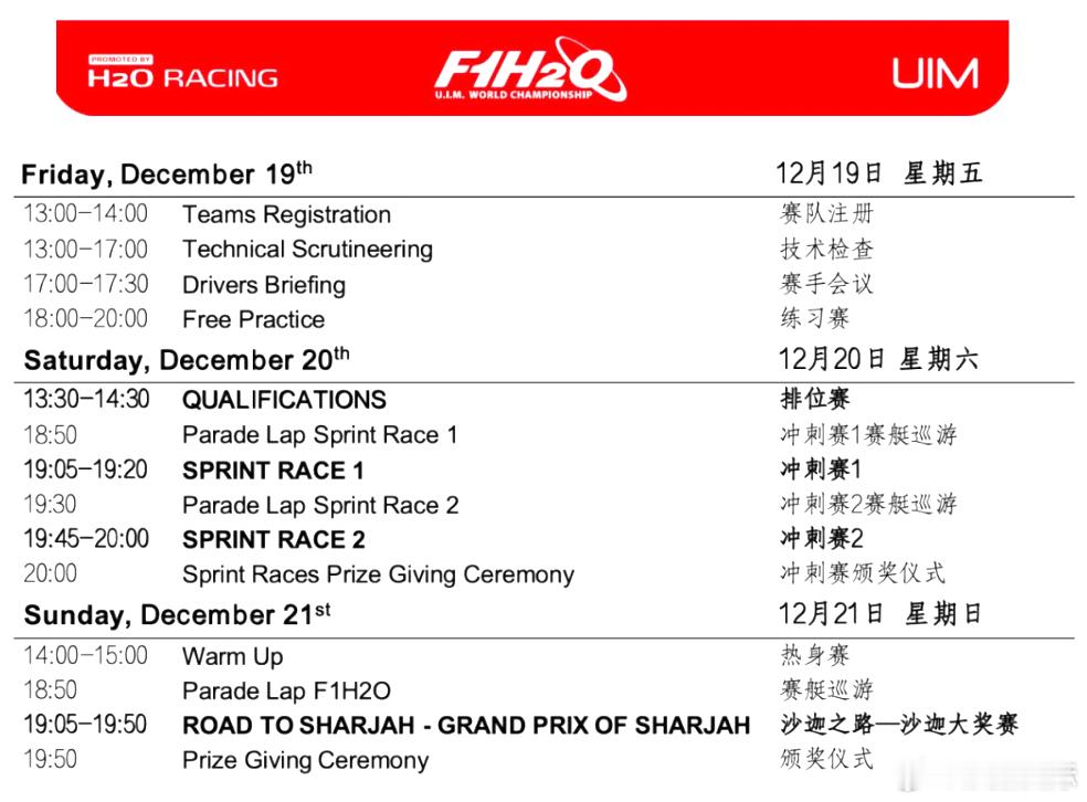 世界F1H2O摩托艇锦标赛,2025年度收官战即将在沙迦打响!赛道信息、比赛日程