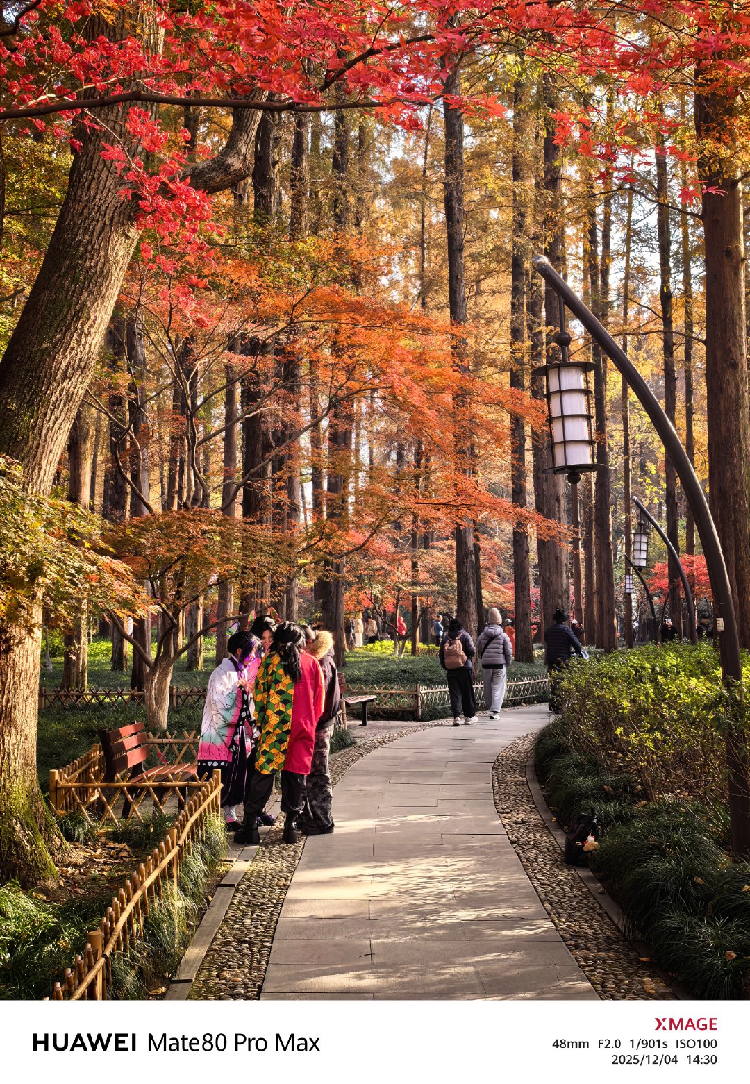 今天下午带着华为Mate80 Pro Max 去西湖追秋天,拍枫叶,也是正真见识到第二代红枫影像的强大了!在面对复杂的颜色,都非常好的还原下来了,不会因为光线的强弱去影像照片直出的效果!大家感受一下,晚点我再放一组对比,大家就能更直观的感受到了!