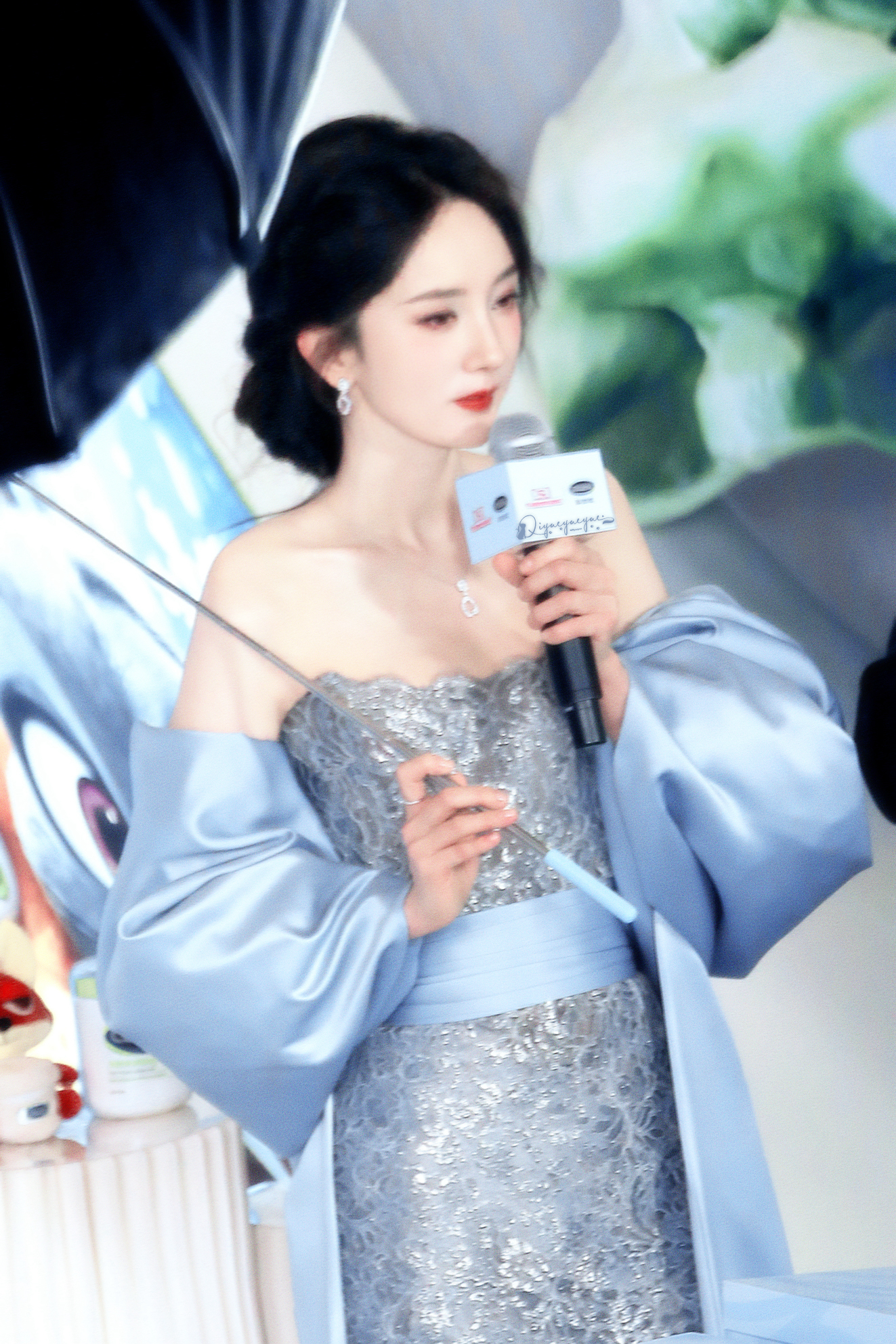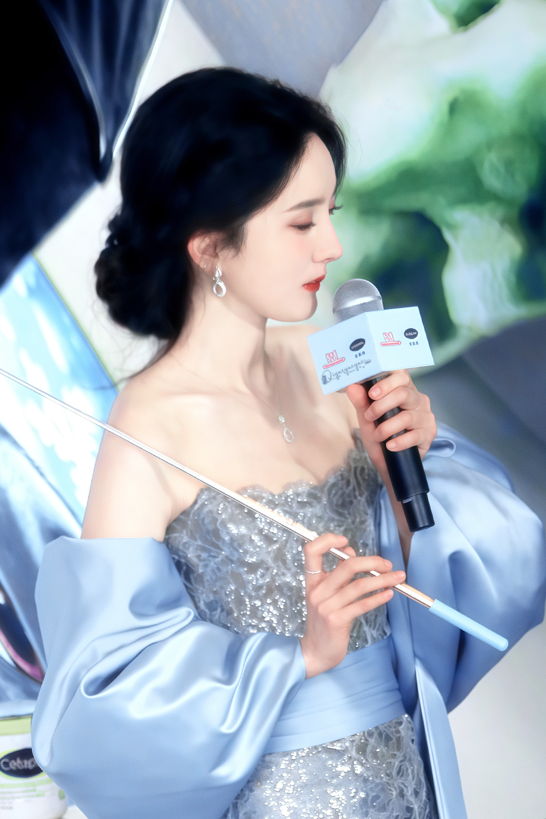 251204 上海 丝塔芙冬天不只有雪还会清清凉沁人的雪碧❄️杨幂蓝色镂空裙