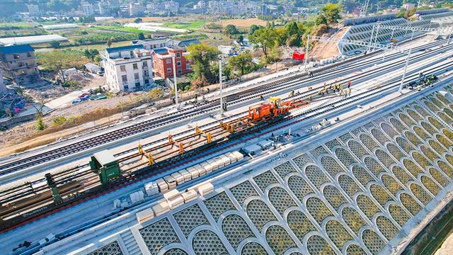 近日,杭台高铁温玉段铺轨作业推进至玉环高铁站。目前,杭台高铁温玉段全线铺轨任务完成近半,项目建设取得重要阶段性进展。