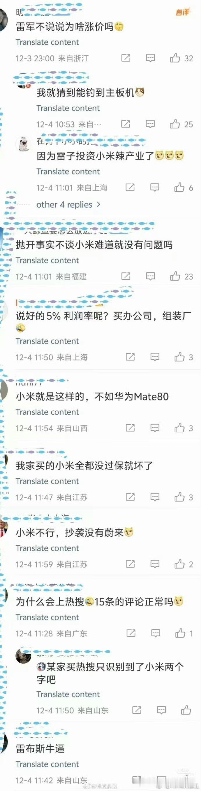 小米辣涨价15条评论就上热搜,一看评论区,小米又躺枪,这主板机不要太离谱了,完全