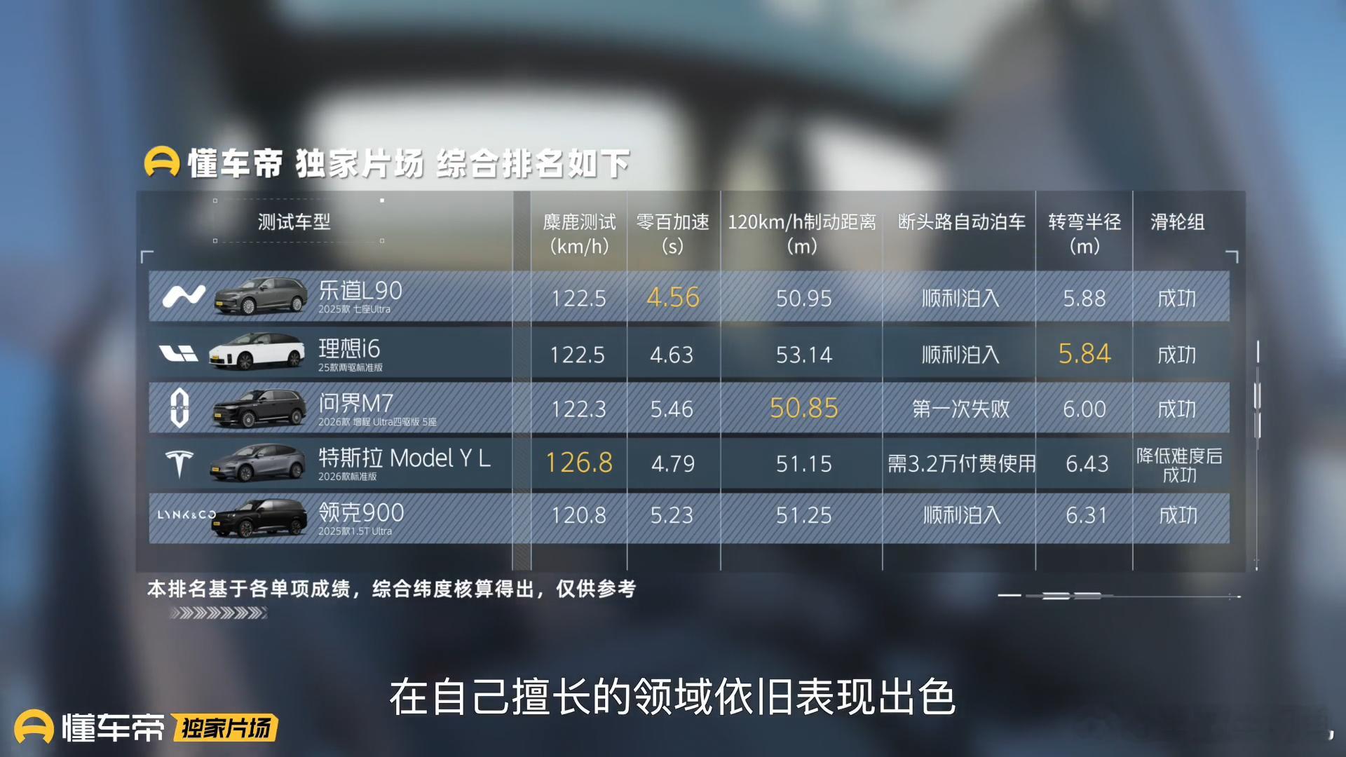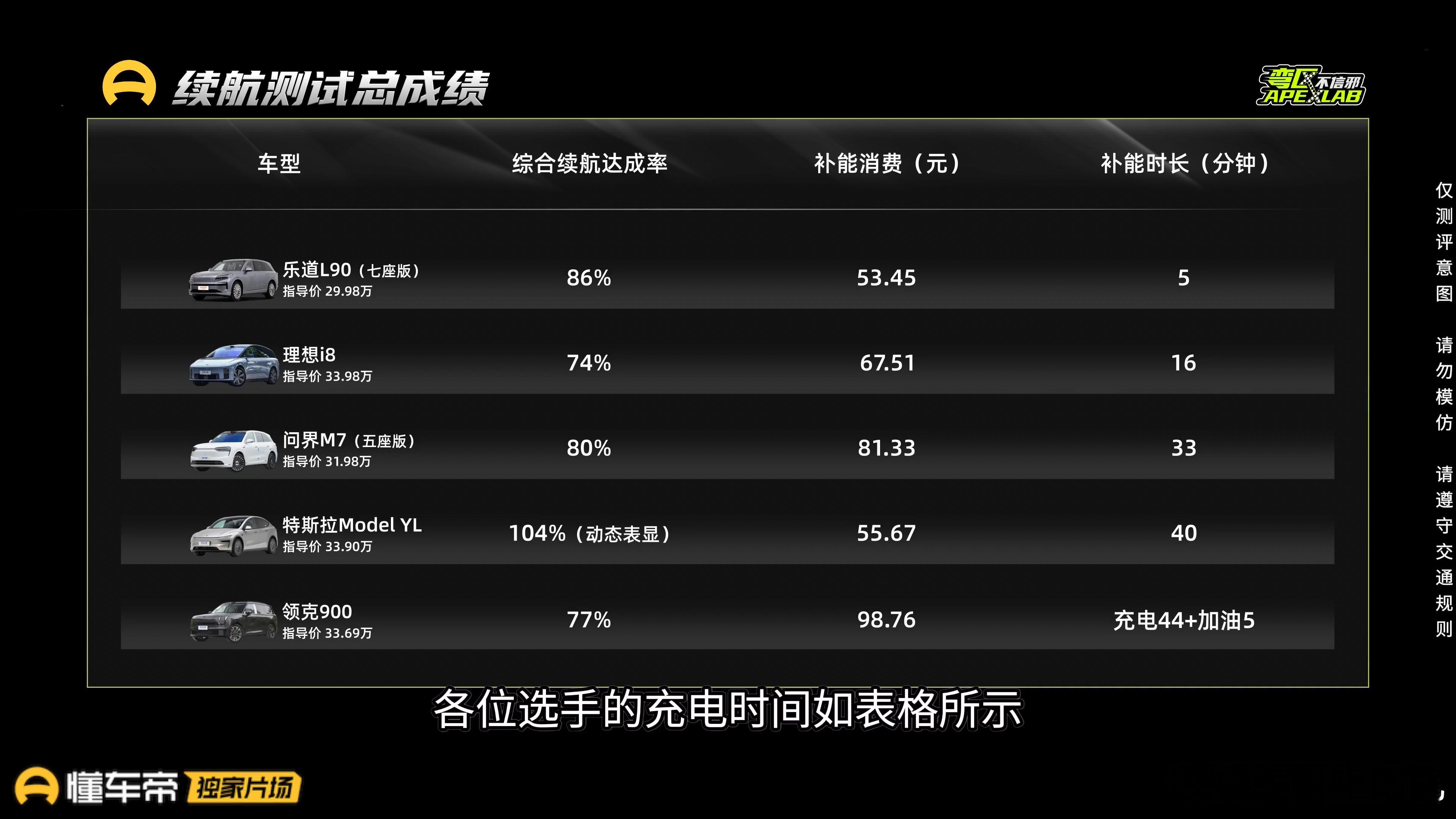 哨兵模式一天掉电15%?这也太费电了吧!懂车帝做了一个20~30万热门新能源SUV大横评,其中一项,哨兵模式24小时耗电量,领克900消耗了15%的电量,当然因为它是插电混动车型,电池比较小,所以消耗电量占的比例比较大,实际消耗了6.72度电,特斯拉Model YL,消耗了7%的电量,续航掉了40km,消耗了5.74度电。问界M7消耗了12%,续航掉了37km,消耗了6.48度电,表现最优秀的是乐道L90,消耗了2%电量,掉了10km里程,仅消耗了1.7度电。在续航测试中,特斯拉Model YL 实际续航达成率104%,这个表现确实不错,但是充电的时间却花了40分钟,是补能速度最慢的纯电车。补能速度最快的乐道L90仅用了5分钟时间,而且它的续航达成率也非常优秀,达到了86%。在车内乘坐空间和储物空间的方面,乐道L90可以说里里外外都很优秀。在高速迷路测试当中,特斯拉Model YL不出意料的拿下了最好成绩,达到了126.8km时速,乐道L90比特斯拉Model YL重了300kg左右,却跟Model 并肩排在了前列,达到了122.5km时速。出乎意料的是乐到L90作为一个5米15的大车,转弯半径居然只有5.88m,他在停车入位,拐弯掉头的时候,操灵活性也表现很好。这个测试非常有意思感兴趣的朋友们可以到懂车帝去看一看长视频!