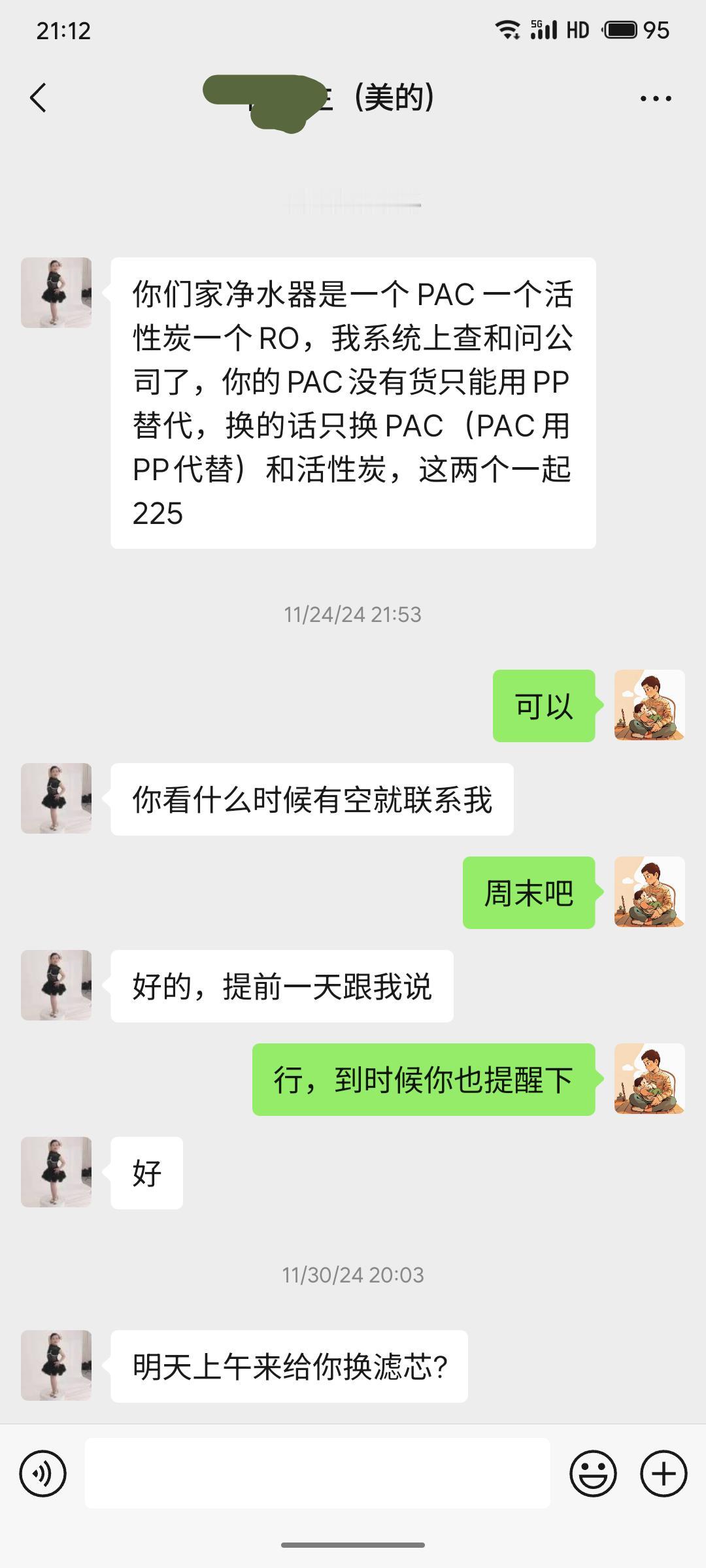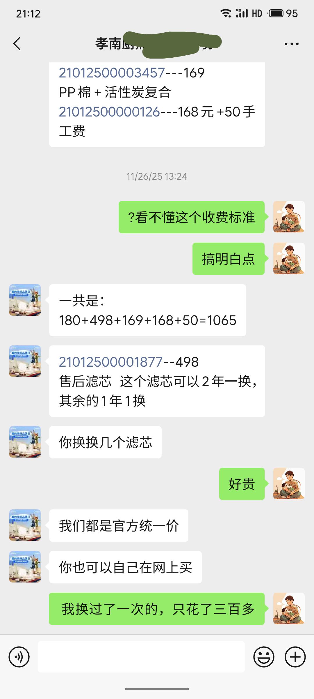 23年家里买了一台壁挂式美的净水器,24年通过微信美的小程序预约换了芯,对方师傅按照预约时间上了门,并提前加了我微信,报了价格,当时只花了200+。今年又从小程序进行了预约,但预约时间前某自称孝感总代理跟我打来电话,让把小程序上预约取消,直接微信里面交流,根据提示我取消了订单,对方直接报了1000+的价,着实吓了我一跳。不知道有无相同经历的朋友,这净水器换芯有啥哪些门路,如何避坑?