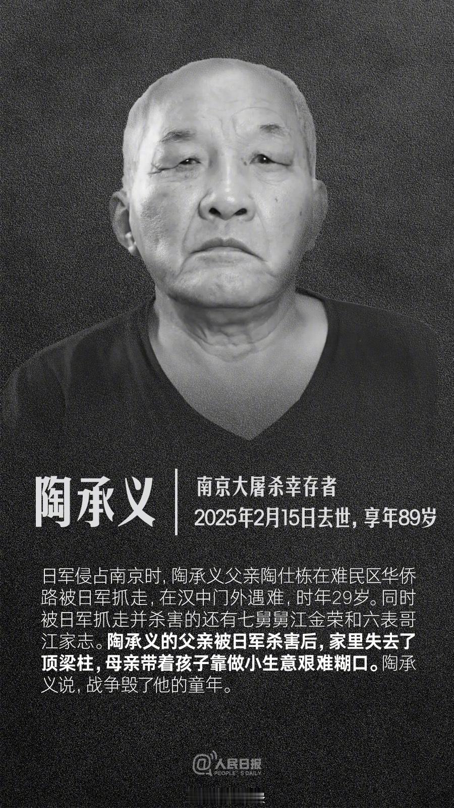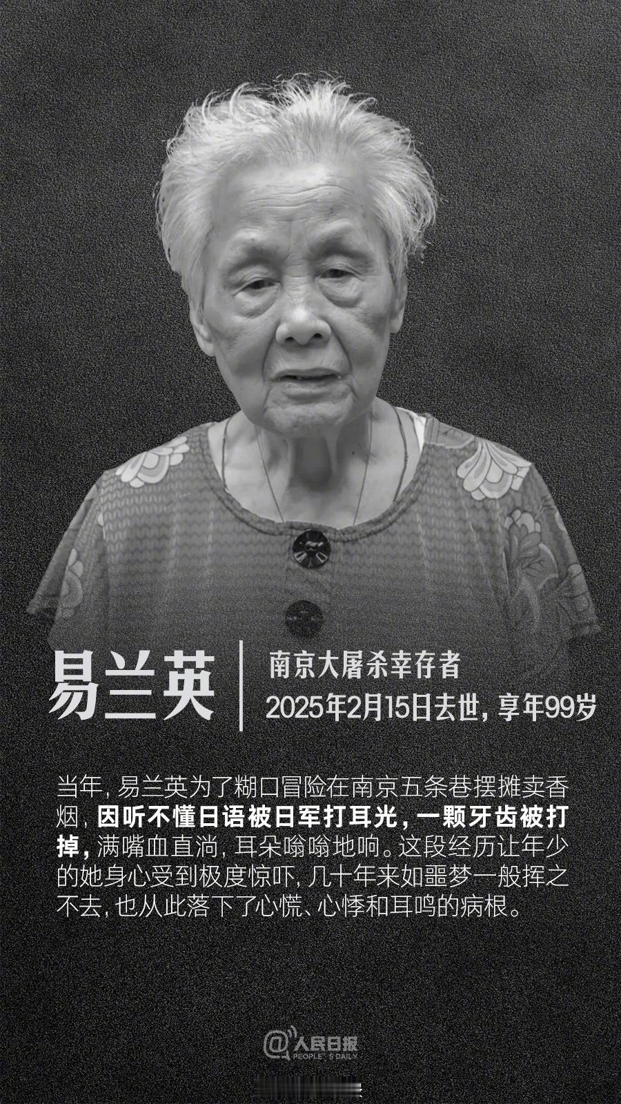 【送别!他们没等到今年的国家公祭日】截至12月4日,今年已有多位南京大屠杀幸存者和侵华日军“慰安妇”制度受害幸存者离开了我们,他们是:艾义英、伍秀英、易兰英、陶承义、谢桂英、刘贵祥 、熊淑兰 、唐复龙、小瑞奶奶(化名)。见证者在减少,但历史不容忘却,他们的血泪故事不容遗忘(人民日报)